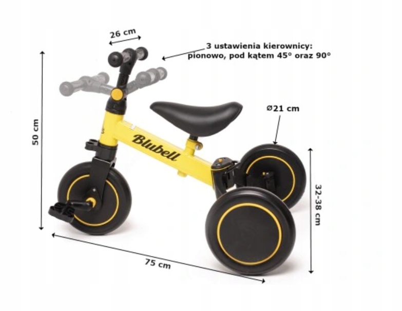 - колісна база у положенні 3 (широко розставлені колеса) служить першим велосипедом, прикріплюючи до нього педалі спереду.