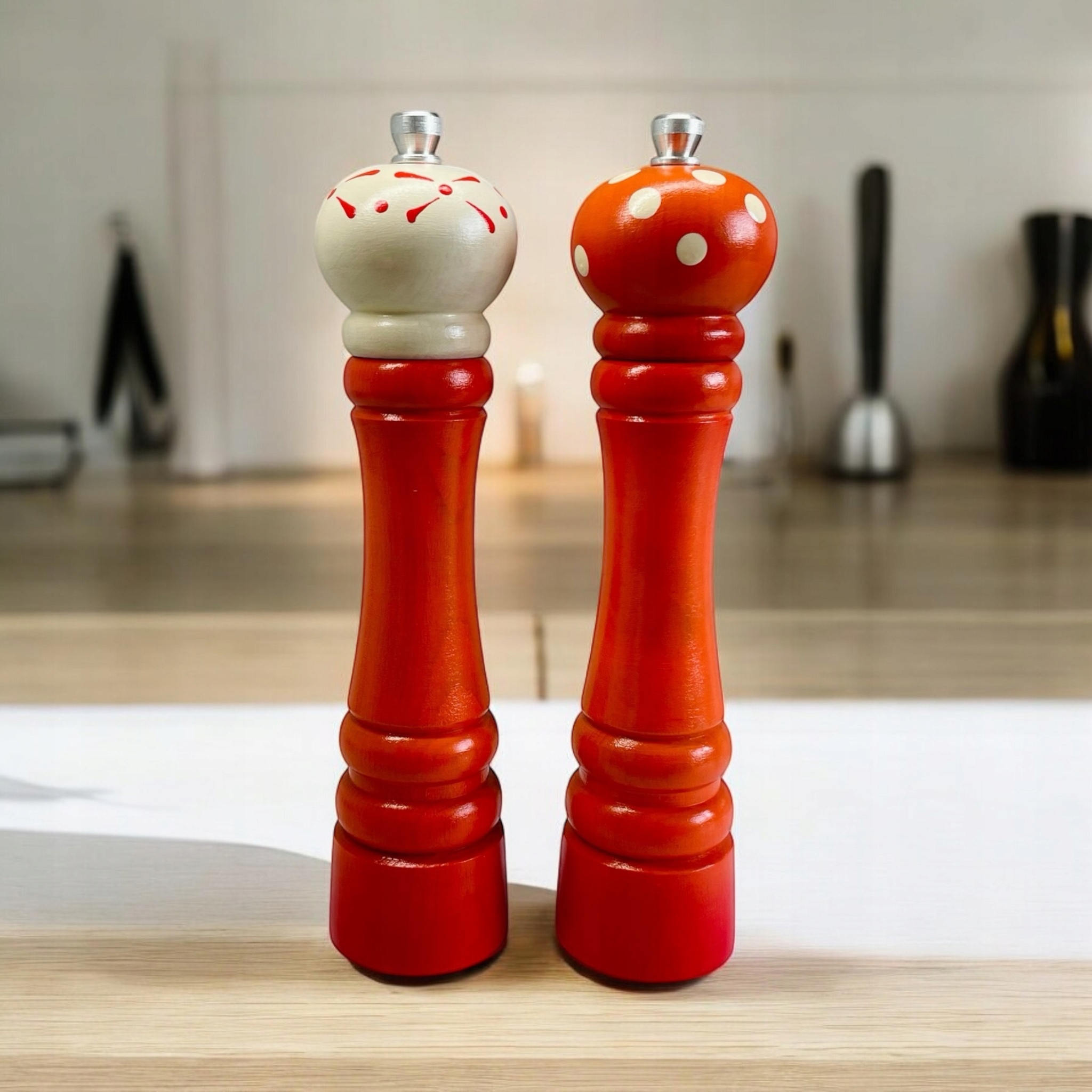 Пофарбована вручну солі та перцеві млини - апельсин, букова деревина, 27 см