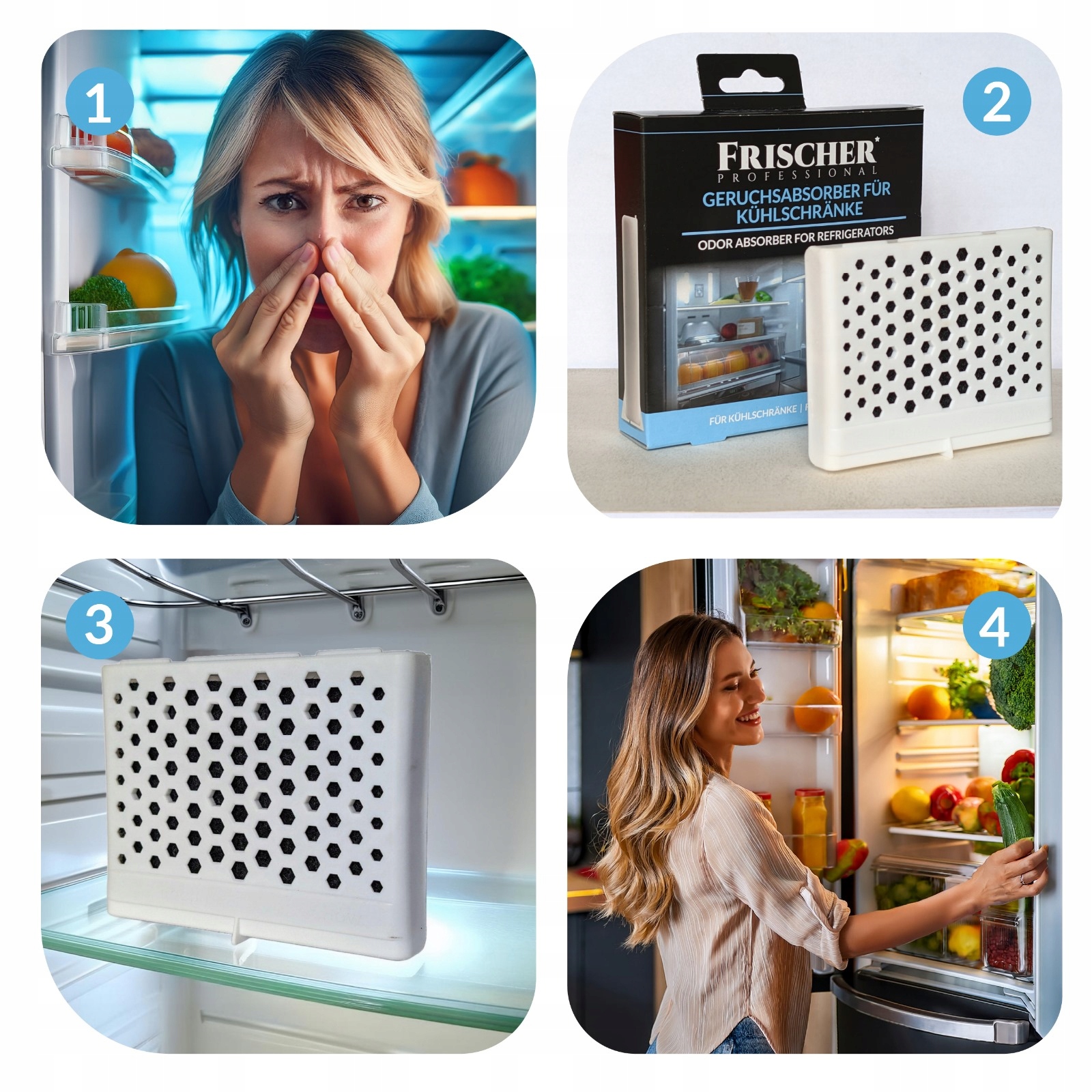 Завдяки вмісту активованого вугілля поглинач ефективно усуває неприємні запахи, що виникають у холодильнику. Активоване вугілля поглинає запахи, завдяки чому ваша їжа завжди залишається свіжою та апетитною, без ризику проникнення ароматів між продуктами.