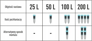 Кількість необхідні поглиначі запахів і частота заміни вугілля фільтр залежить від встановленого обсягу та інтенсивності виділення під час зброджування газів. Ми можемо використовувати фільтри для кращого ефекту складіть (макс. 2 штуки) на один тюбик або використовуйте на окремих пробірки (рекомендації щодо використання в таблиці).
