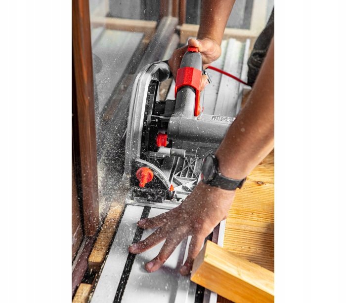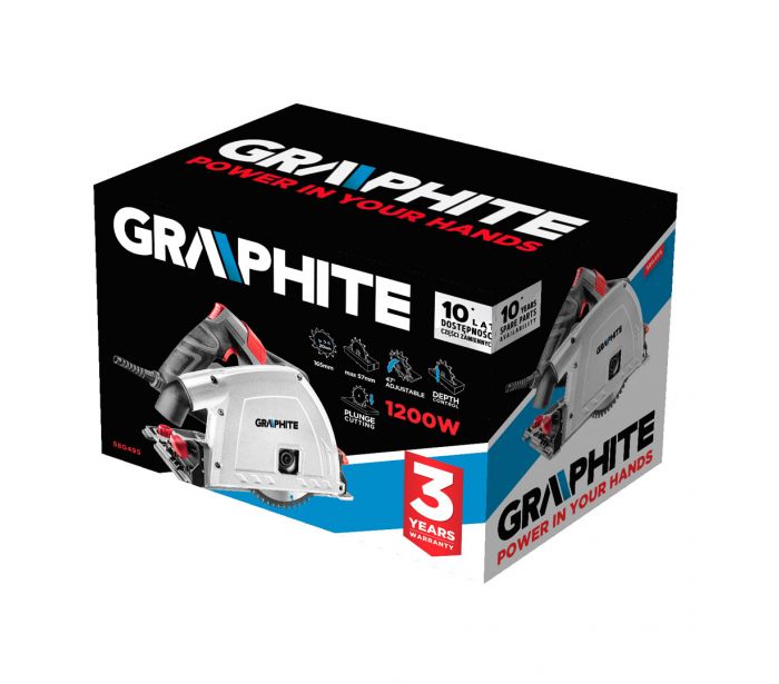 Погружна пилка GRAPHITE потужністю 1200 Вт – це точний пристрій для різання таких матеріалів, як дерево, ламінат або алюміній. Конструкція поглибної пилки дозволяє робити глибокі різи в будь-якому місці матеріалу - без необхідності починати різання з краю, як у випадку з традиційними циркулярними пилками. Пристрій працює з відрізними дисками діаметром 165 мм і дозволяє працювати на регульованій швидкості в діапазоні 2200-5200 об / хв. Для підвищення точності при виконанні більш довгих форматних різів рекомендується використовувати напрямну, яка також доступна в пропозиції торгової марки GRAPHITE. Максимальна товщина різу без направляючої стрічки становить 57 мм, з направляючою стрічкою 52 мм. Прилад оснащений обмежувачем глибини з точною шкалою і індикатором, який дозволяє легко вибрати глибину як при роботі зі смужкою, так і без неї. Лапка врізної пилки оснащена системою регулювання зазору по відношенню до направляючої шини і дозволяє регулювати кут різу в діапазоні 0-47°.