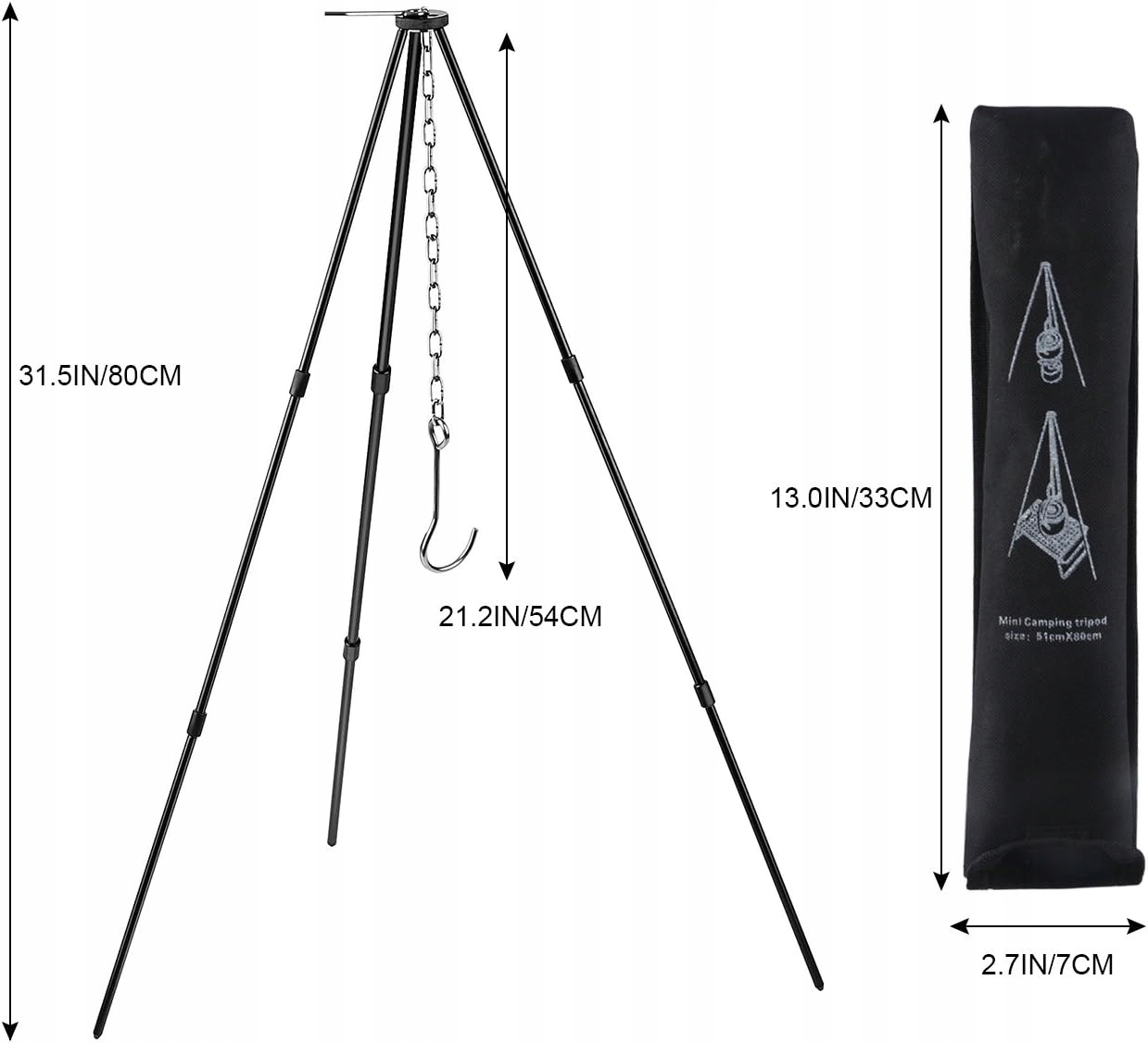 - Детальний розмір: кухонна підставка для пікніка на відкритому повітрі, приблизно 26,5 см лише один стовп і одна з цілих ніжок штатива приблизно 80 см, а ланцюг приблизно 45 см, ви можете відрегулювати висоту відповідно до ваших потреб.