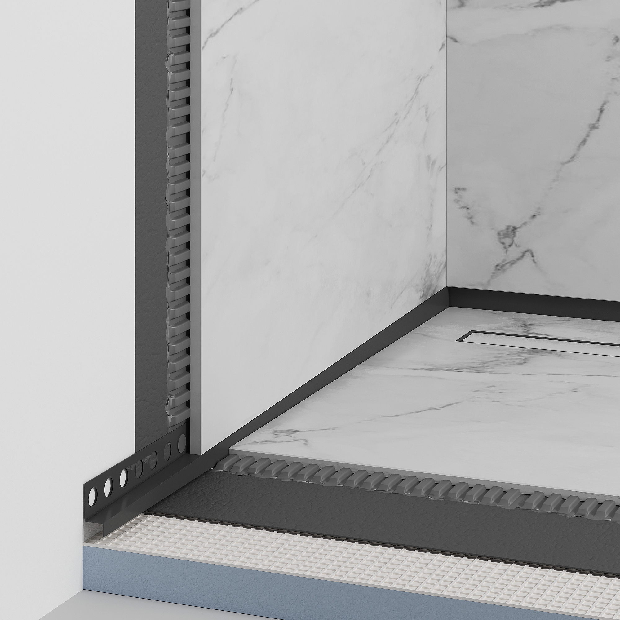 Мета смуги нахилу полягає в тому, щоб потенційно замаскувати непривабливі торці плитки, водночас дозволяючи створити природний нахил у напрямку до дренажу, без необхідності точного різання плитки. Завдяки цьому рішенню душовий піддон відповідає найвищим стандартам, як технічно, гарантуючи належний відведення води, так і візуально, надаючи ванній кімнаті елегантний характер.