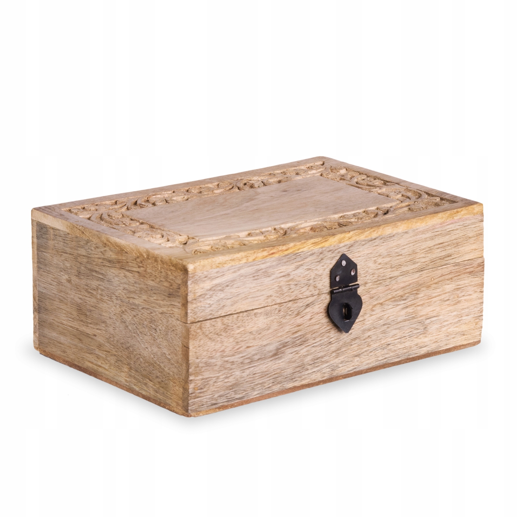 похмура скринька має цікавий дизайн з елегантним тоном. Він був зроблений у деревини з більш темним кольором . Його верхня частина прикрашена вишуканими канавками у вигляді листяних лоз . Щоб відкрити шкатулку, просто потягніть металеву ручку з однаково цікавим виглядом. Це буде чудова ідея подарунка в гідному виданні. У внутрішній частині шкатулки немає відсіків, це один великий простір для аксесуарів та дрібних предметів.