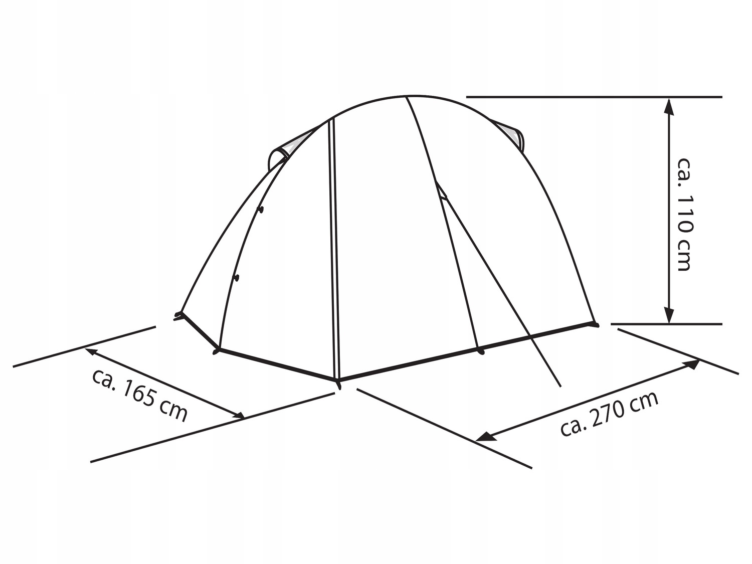 - Зовнішні розміри: прибл. 270 x 165 x 110 см (довжина x ширина x висота)