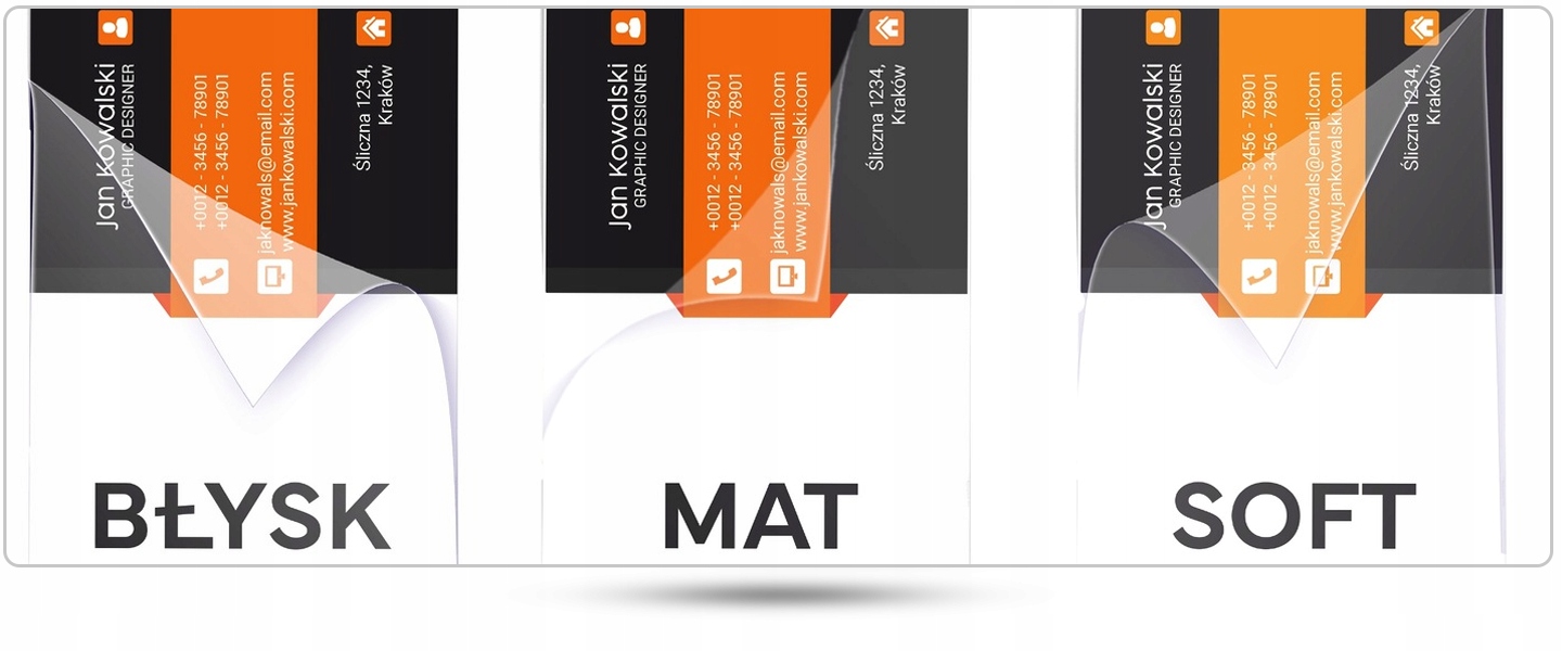 Крейдяний папір доступний у різних вагах. Для описаних тут візитних карток ми вибрали вагу 350 г/м2, що забезпечує ідеальну жорсткість та належне насичення кольору.