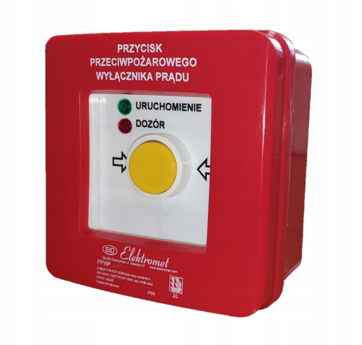 Кнопка протипожежного перемикача PPWP-4s A/4 від Elektromet Dzierżoniów є виконавчим елементом у системі протипожежного вимикача живлення, його завдання полягає в увімкнути виконавчий механізм елементаякий відключить живлення об'єкта від джерела електроенергіїпід час проведення пожежно-рятувальних робіт. Кнопка виконана в накладному варіанті, має 4 струмопроводу 12А NC-NO NC-NO. Кожна версія пропонується у двох типах A та B.