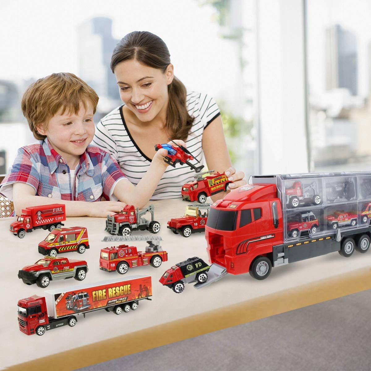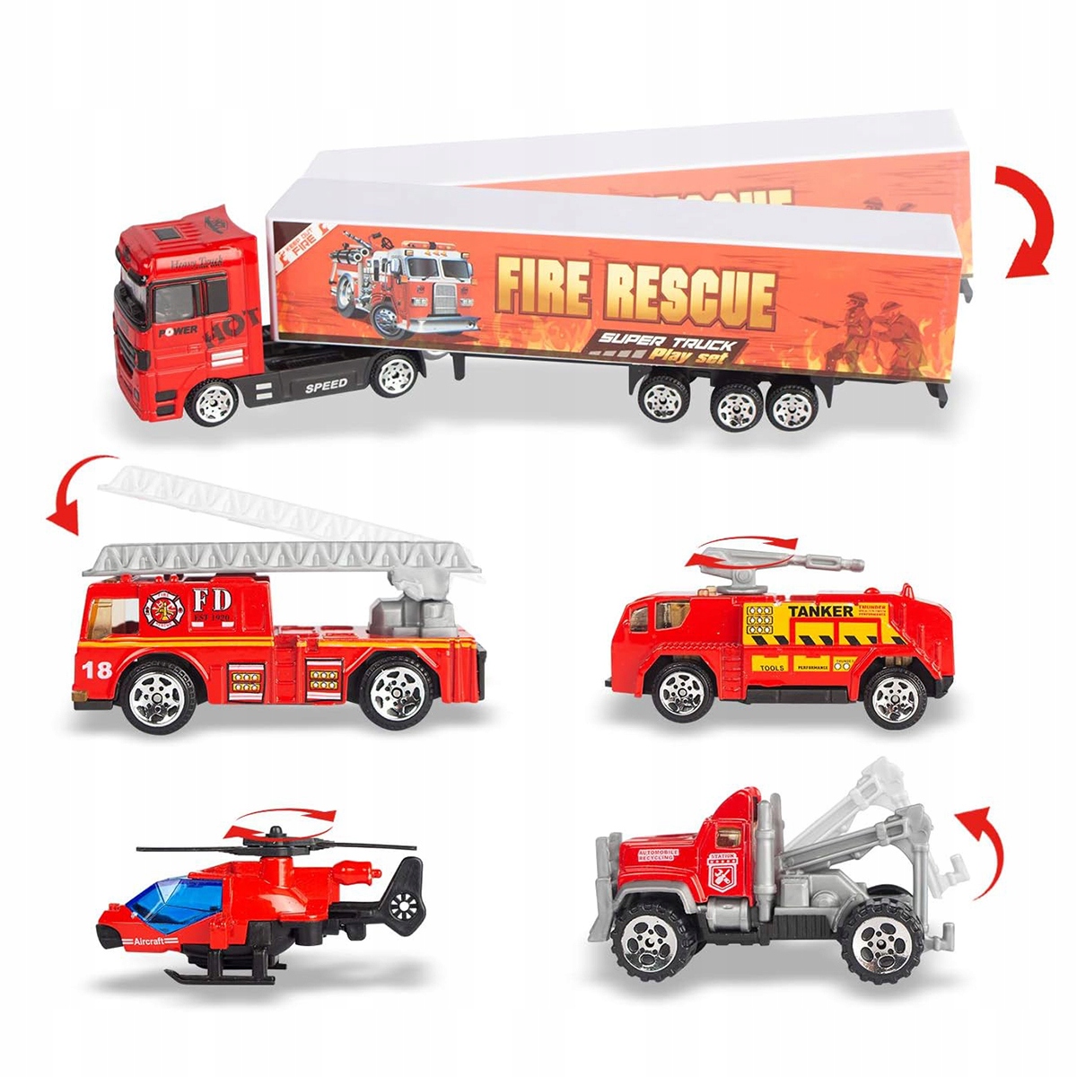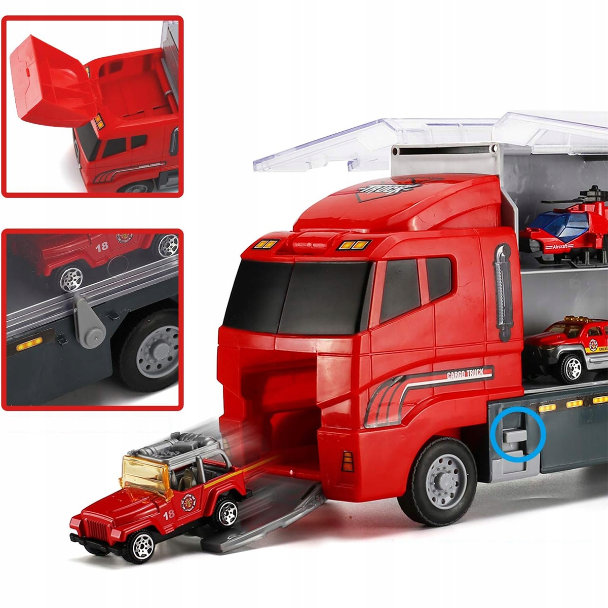 ⚡Catapult Fun:Передня частина великої пожежної машини оснащена функцією катапульти, яку можна завантажити в передню частину міні-автомобіля та відпустити, натиснувши кнопку викидання. Крім того, і великі вантажівки, і мініатюрні автомобілі рухаються за інерцією та потребують лише м’якого поштовху.