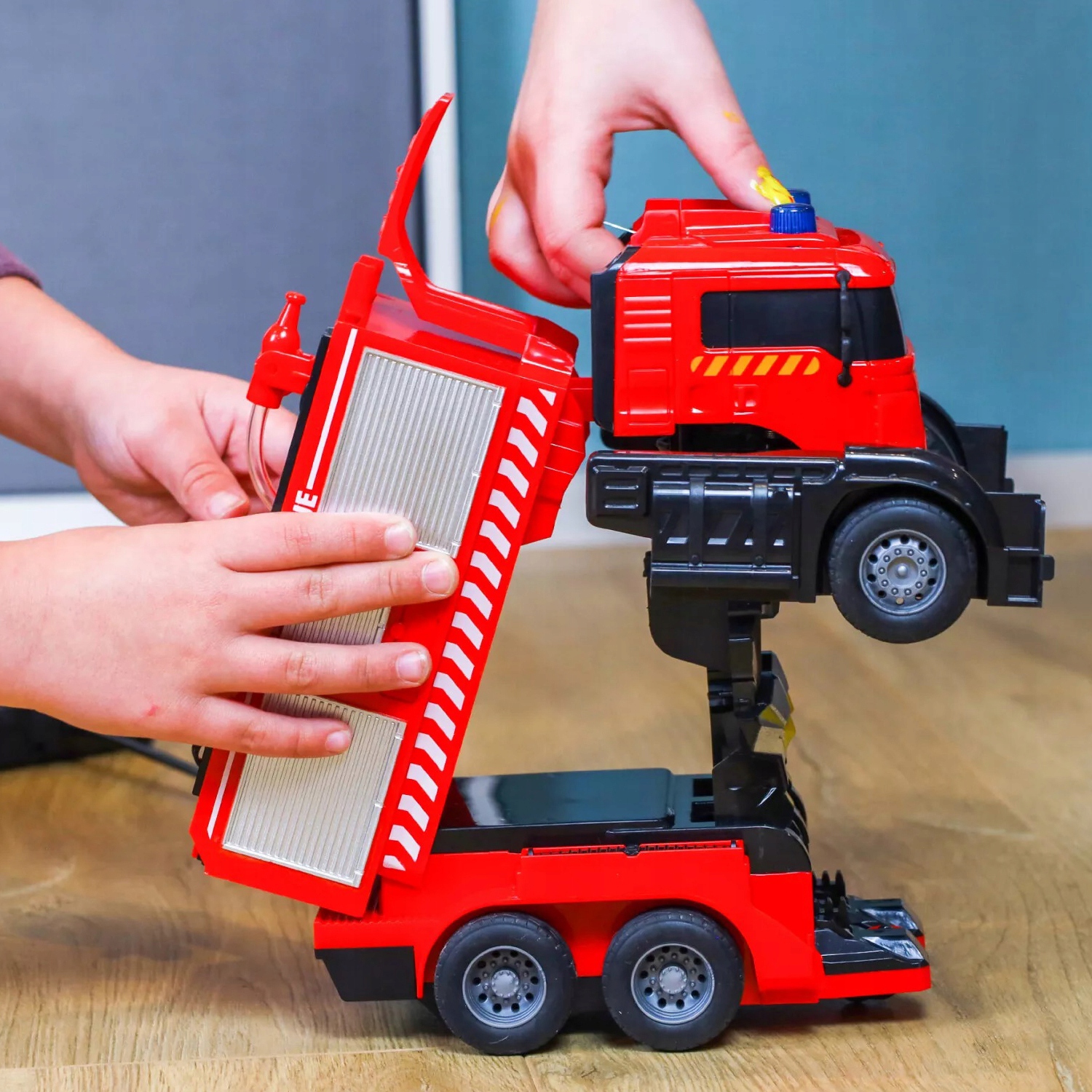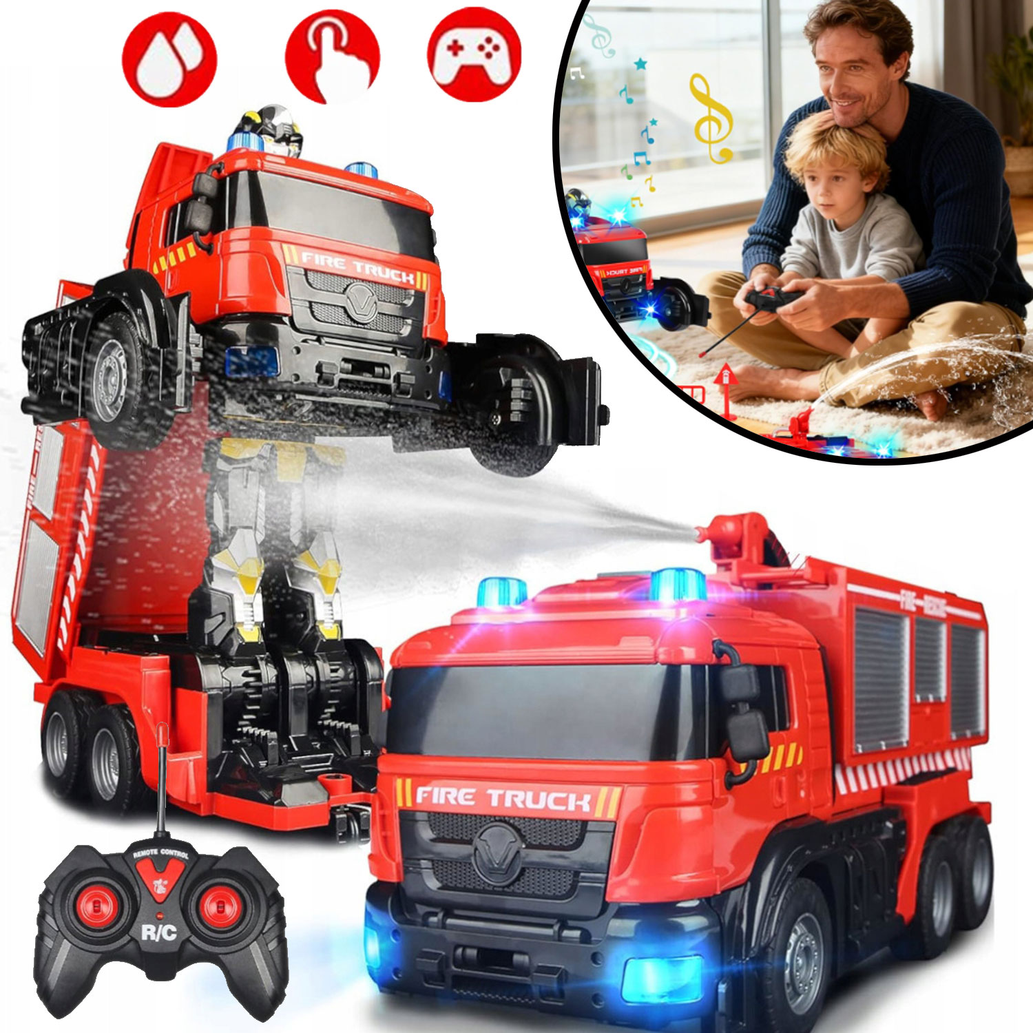 🟢🟢🟢 ОПИС:Довге натискання кнопки викликає трансформацію - дитяча пожежна машина на дистанційному керуванні перетворюється з автомобіля на робота. Просто натисніть і утримуйте кнопку, щоб вільно перемикатися між режимами автомобіля та робота.