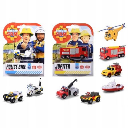 пожежник Сем, 1:64 транспортні засоби, 8 типів на вибір. Металеві моделі із зображенням улюблених транспортних засобів дітей. Моделі відтворюють транспортні засоби, які можна побачити в останніх серіях казок про пожежника Самі: 8 x Юпітер; 3 x Меркурій; Wallaby 2; Венера 2.0; 2 Xphoenix, Titan, поліцейський мотоцикл, 1 х поліцейська ртуть. Шкала 1:64, 3+