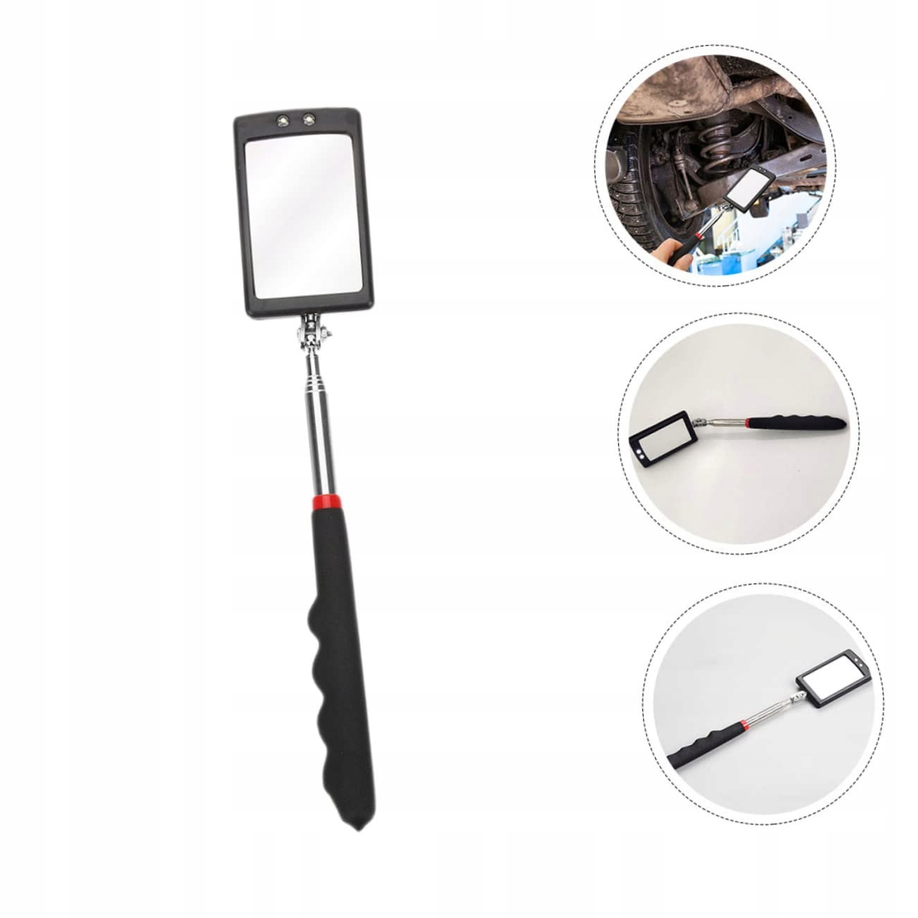 ОГЛЯДОВЕ ДЗЕРКАЛО З ПІДСВІТЛЮВАННЯМ допомагає легко відновити впущені предмети, корисне доповнення до будь-якого набору інструментів для ремонту автомобіля, човна, кемпінгу, риболовлі та ОГЛЯДОВОГО ДЗЕРКАЛА ДЛЯ МЕХАНІКА простий дизайн, простий у використанні, його не легко деформувати, ви можете використовувати його з упевненістю. ГНУЧКЕ СВІТЛОДІОДНЕ ОГЛЯДОВЕ ДЗЕРКАЛО За допомогою телескопічної палиці довжину ручної палиці можна регулювати відповідно до ваших потреб, а після використання її можна зменшити до найменшого розміру, який легко переносити та зберігати. ОГЛЯДОВЕ ДЗЕРКАЛО ДЛЯ ДОДАТКОВОГО ОГЛЯДУ Висувне гнучке світлодіодне оглядове дзеркало є важливим інструментом для пошуку сталевих інструментів, таких як болти, гайки, гайкові ключі та стружки. ГНУЧКЕ ТЕЛЕСКОПІЧНЕ ДЗЕРКАЛО сюрприз на день народження хлопця, День Святого Валентина, День батька, Різдво тощо.