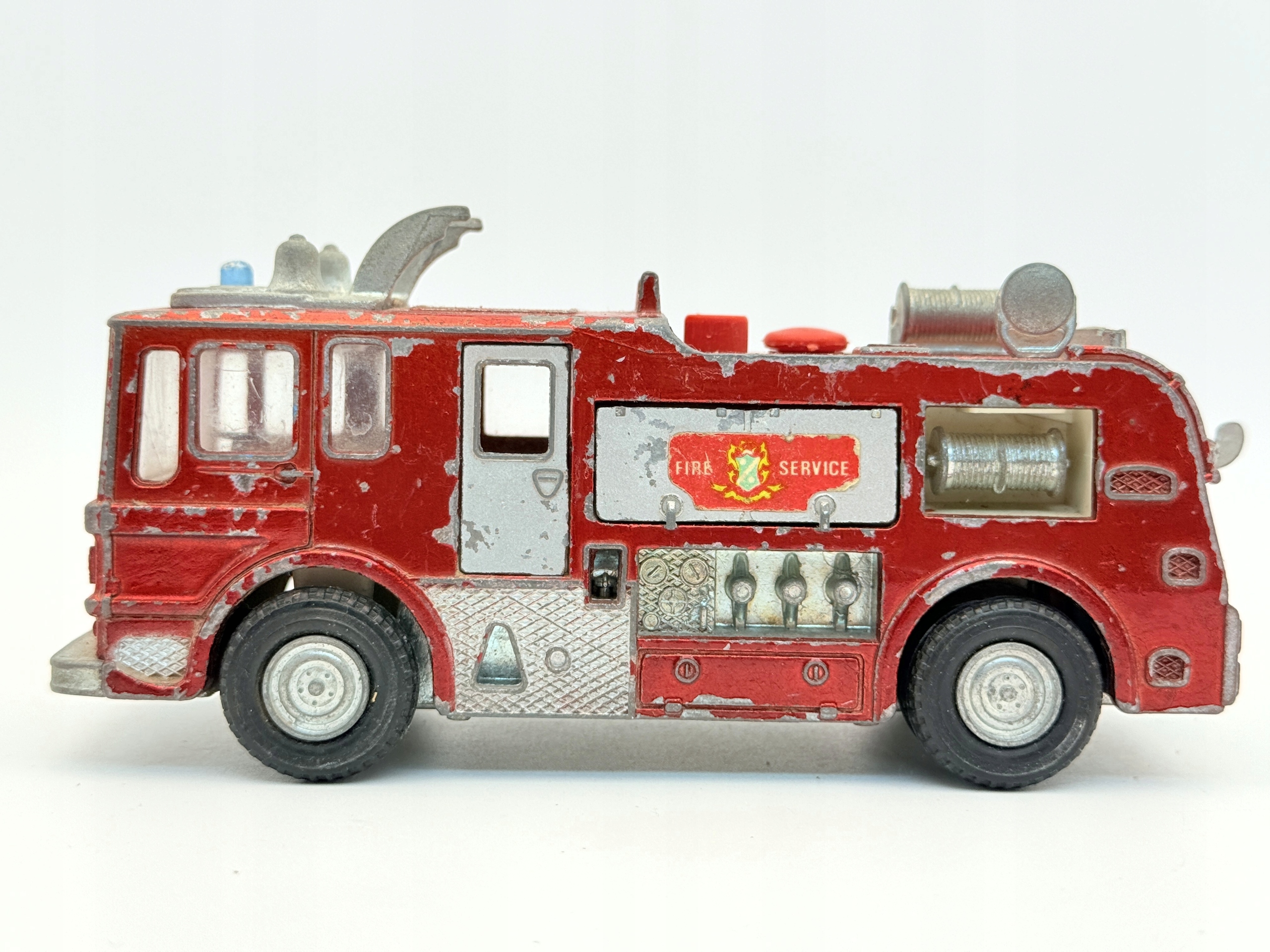 Говоріть Merryweather Marquis Fire Tender від Dinky Toys - це справжнє частування для колекціонерів. Ця модель пожежної частини виготовлена з металу, відрізняється її суцільною конструкцією та увагою до деталей. Червоний колір тіла в поєднанні зі срібними елементами надає йому справжній вигляд. Такі доповнення, як драбини та пожежні шланги, які додають реалізм, заслуговують уваги. Хоча модель має ознаки використання, вона все ще приваблива для любителів класичних джерел. Його унікальність - це вірне відтворення пожежної машини з епохи, що робить його цінним придбанням для кожного колектора.