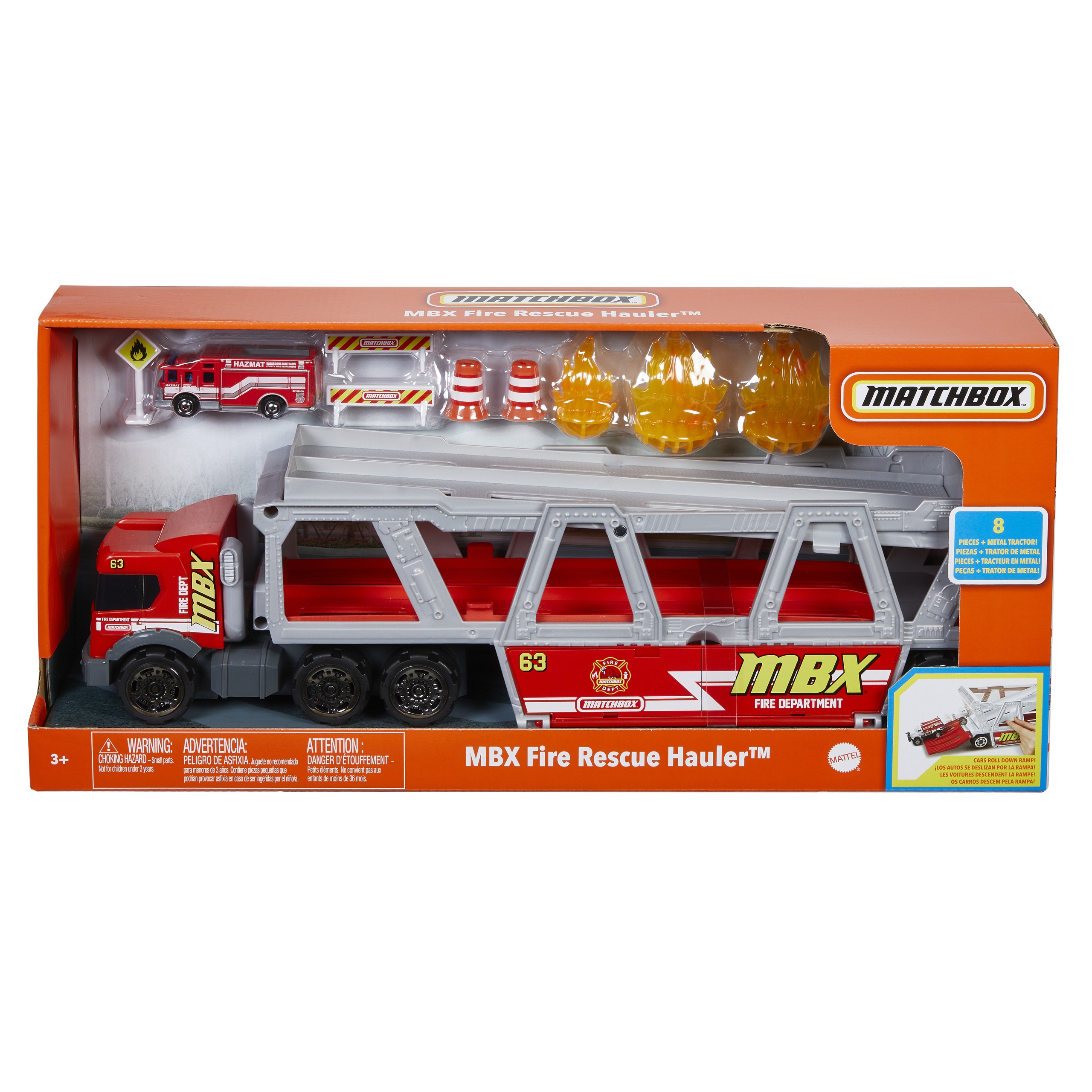 - Matchbox Fire Truck Transporter — це вантажівка, натхненна пожежниками, з місцем для зберігання транспортних засобів, що заохочує вас створювати власні героїчні пригоди.