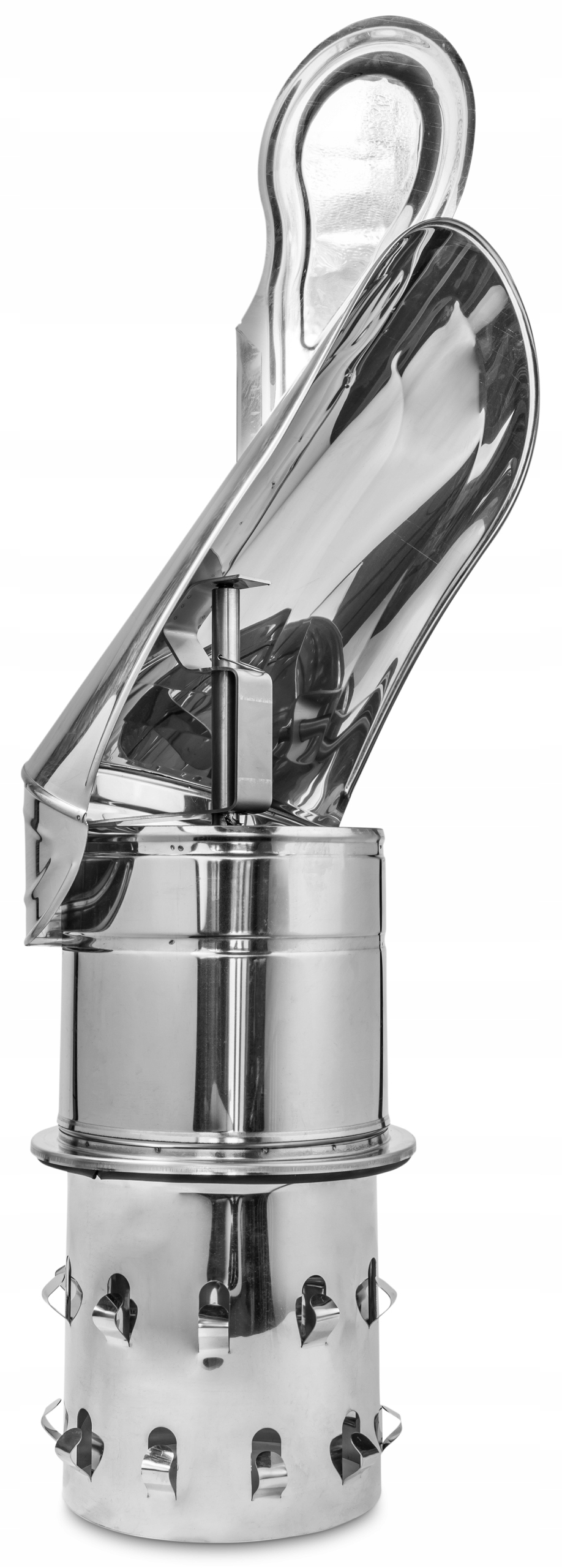 Само -виховування демчики Dimney пожежник -це пристрій, динамічно використовуючи силу вітру для підтримки проекту димоходу. Незалежно від напрямку, сили та типу вітру, коренева трубка Hin розміщується на протилежній стороні до напрямку дме вітру. Він використовується для монтажу на торгових точках з гравітаційним (вентиляцією), димом та димом. Режим печі також сприяє цьому - вмикання та вимкнення, тобто нагрівання та охолодження димоходу. Це спричиняє конденсацію водяної пари на стінах димоходу та розетків димоходу (залежно від того, де будуть найкращі умови). Конденсат - це вода, що містить сполуки, що містять сірку, які агресивні до сталі. Це іноді викликає корозію Ротаційна система, викликана занадто високою температурою вихлопних газів. [ºC]