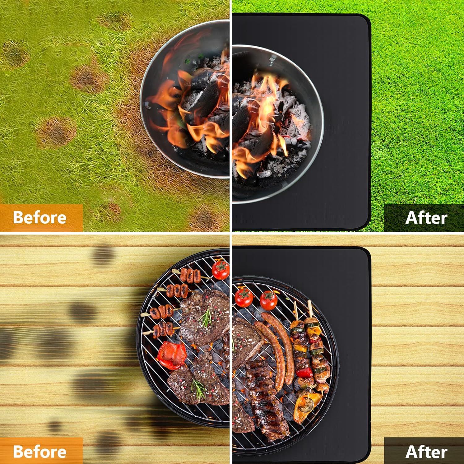 🥩🥩【 Високі температури та вогнестійкі】 порівняно з іншими фетровими прокладками, наші вогнестійкі прокладки виготовлені з високоякісного склопластику і покриті спеціальним кремезним покриттям на обох сторонах. Це забезпечує не тільки чудову тепловідповідач до 500 ° С/982 ° F, але й водонепроникний, проти ковзання та стійкий до бруду. Точні краплі країв також забезпечують надійну стійкість та теплову стійкість.