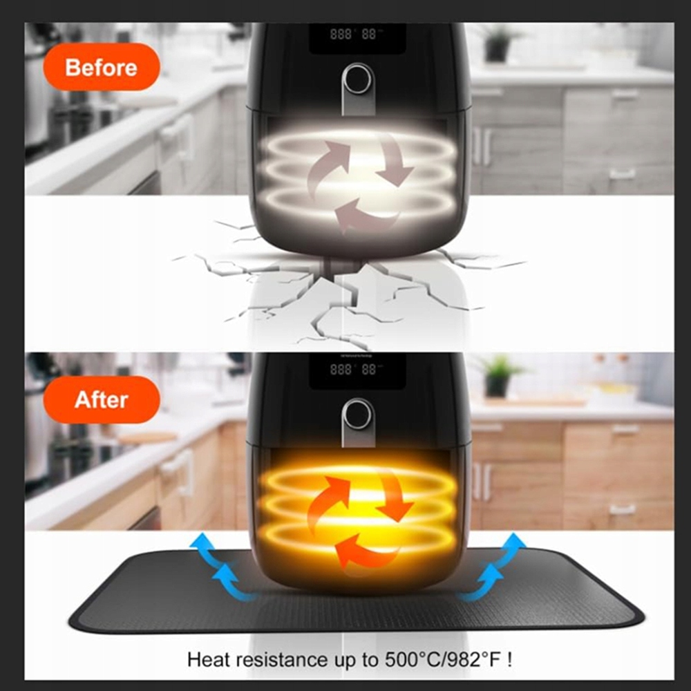 🥓🥓【 багатофункціональне використання】 Наші вогнестійкі прокладки вимірюють 40 х 60 см і мають надзвичайно широкий діапазон використання. Ідеально підходить для різноманітних кухонних та електричних приладів, включаючи фритюрниці, кавоварки, духовки, мікрохвильові печі, змішувачі, тостри, соковижималки та каструлі для смаження. Це означає, що у вас є надійне рішення для різноманітних кухонних вимог.
