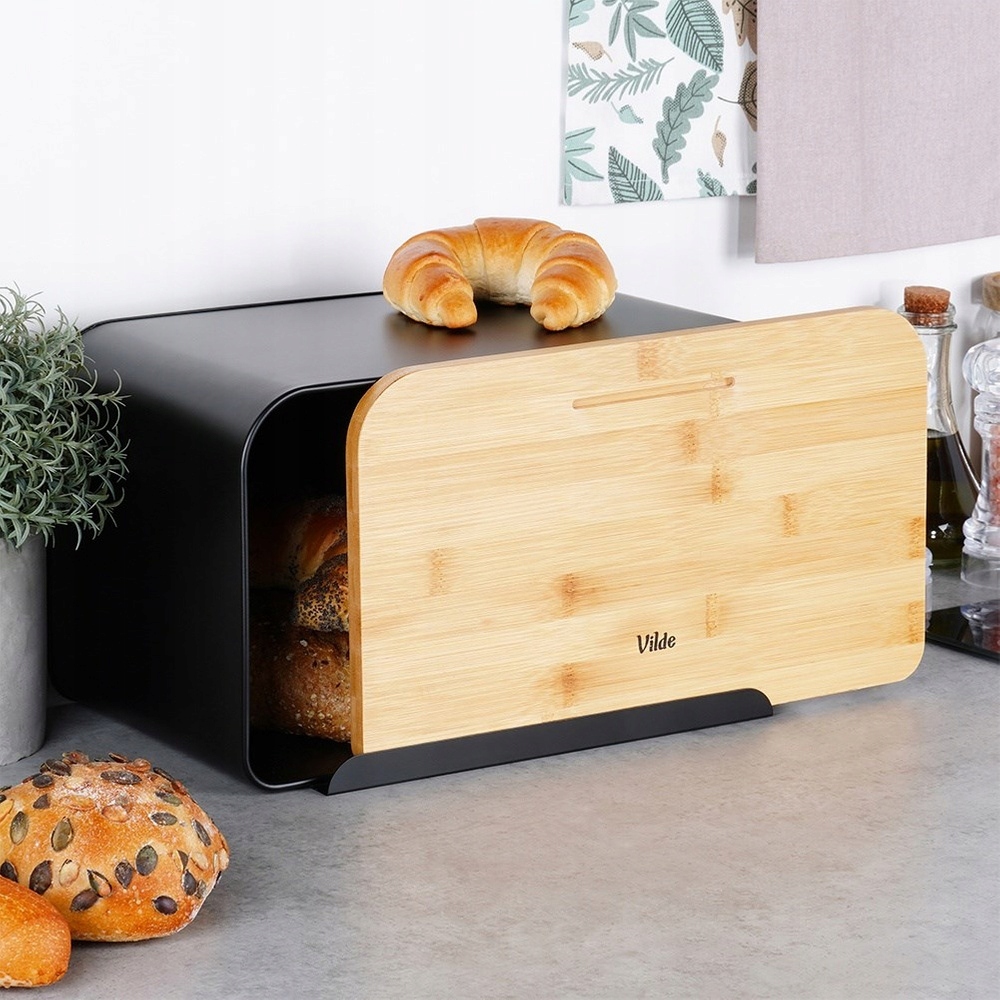 Pojemnik CHLEBAK na pieczywo chleb bułki z deską bambusową kuchenny czarny