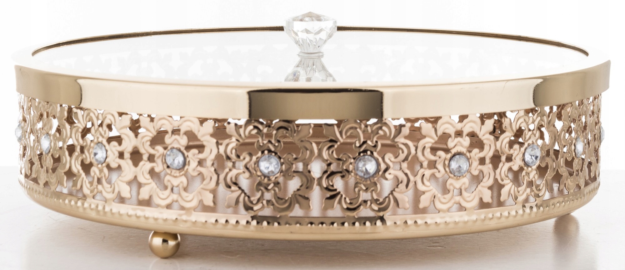 Pojemnik dekoracyjny metalowy złoty szklany