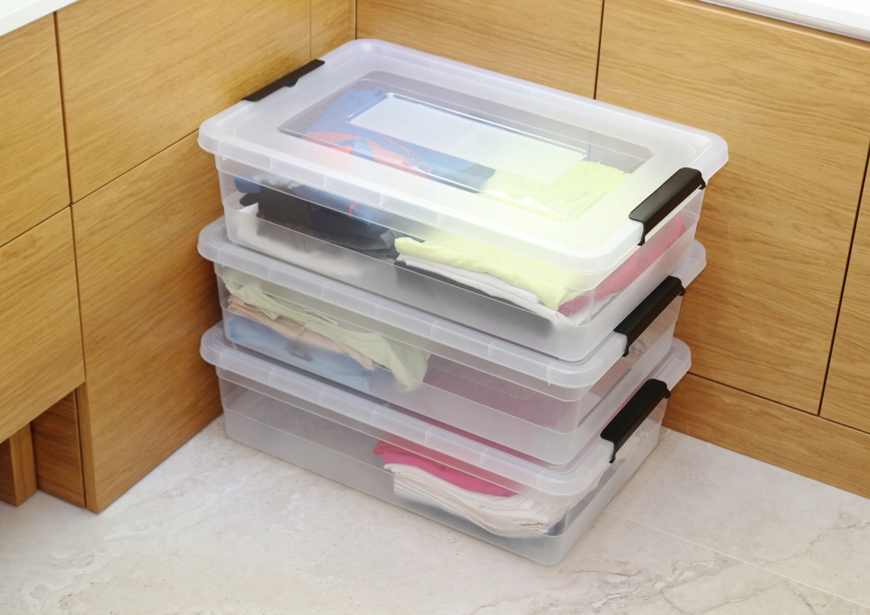 POJEMNIK POD ŁÓŻKO PLASTIKOWY PUDŁO WYTRZYMAŁY Z POKRYWĄ NA KÓŁKACH 28L