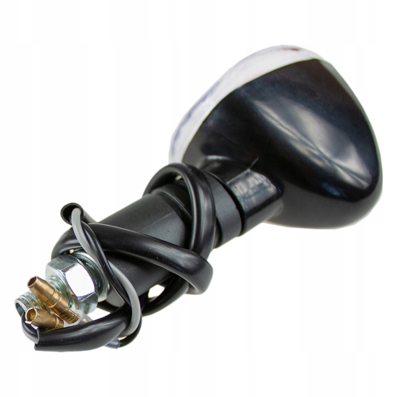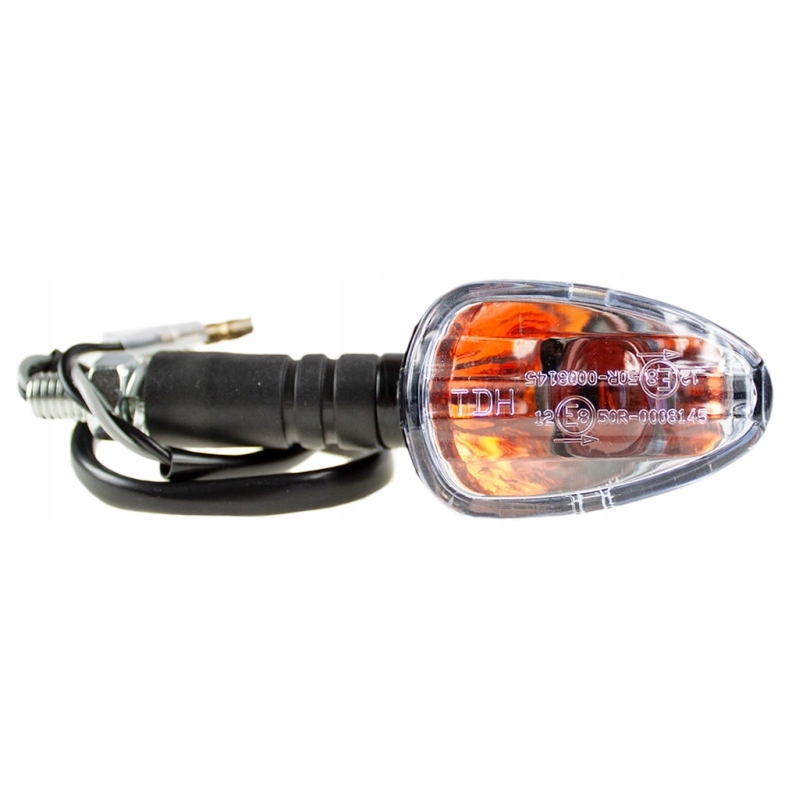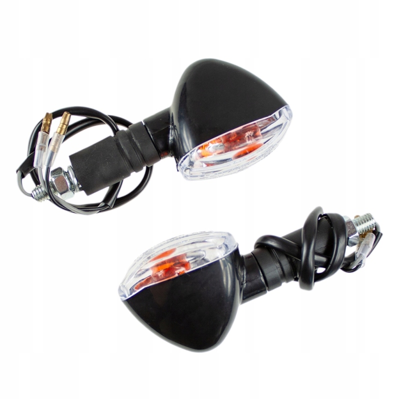 Пара з двох універсальних покажчиків повороту з прозорою лінзою, з омологацією. Для використання на будь-якому мотоциклі, мопед, квадроцикл