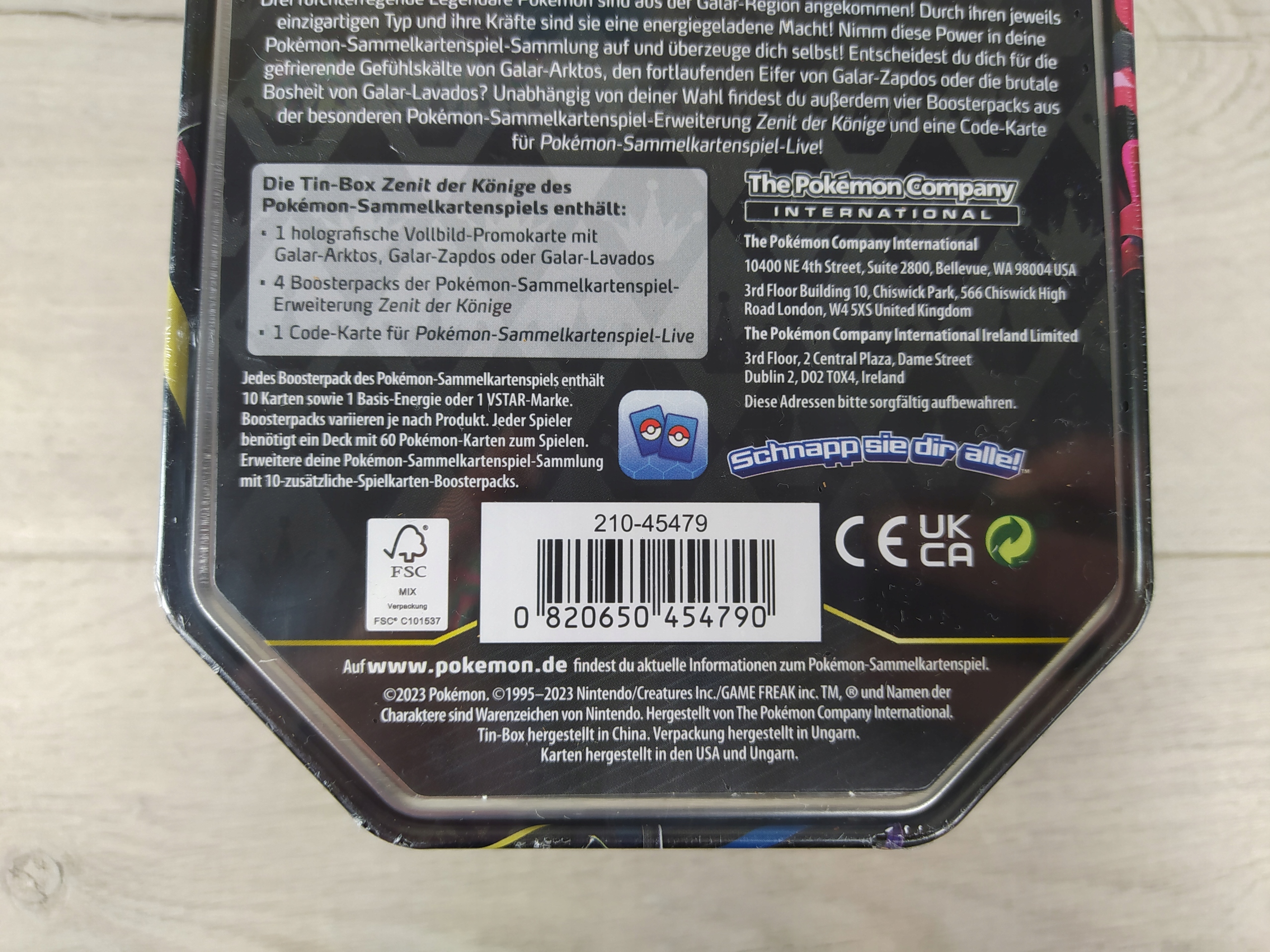 Pokemon TCG Galar-Lavados Tin Box Zenith of Kings Cards