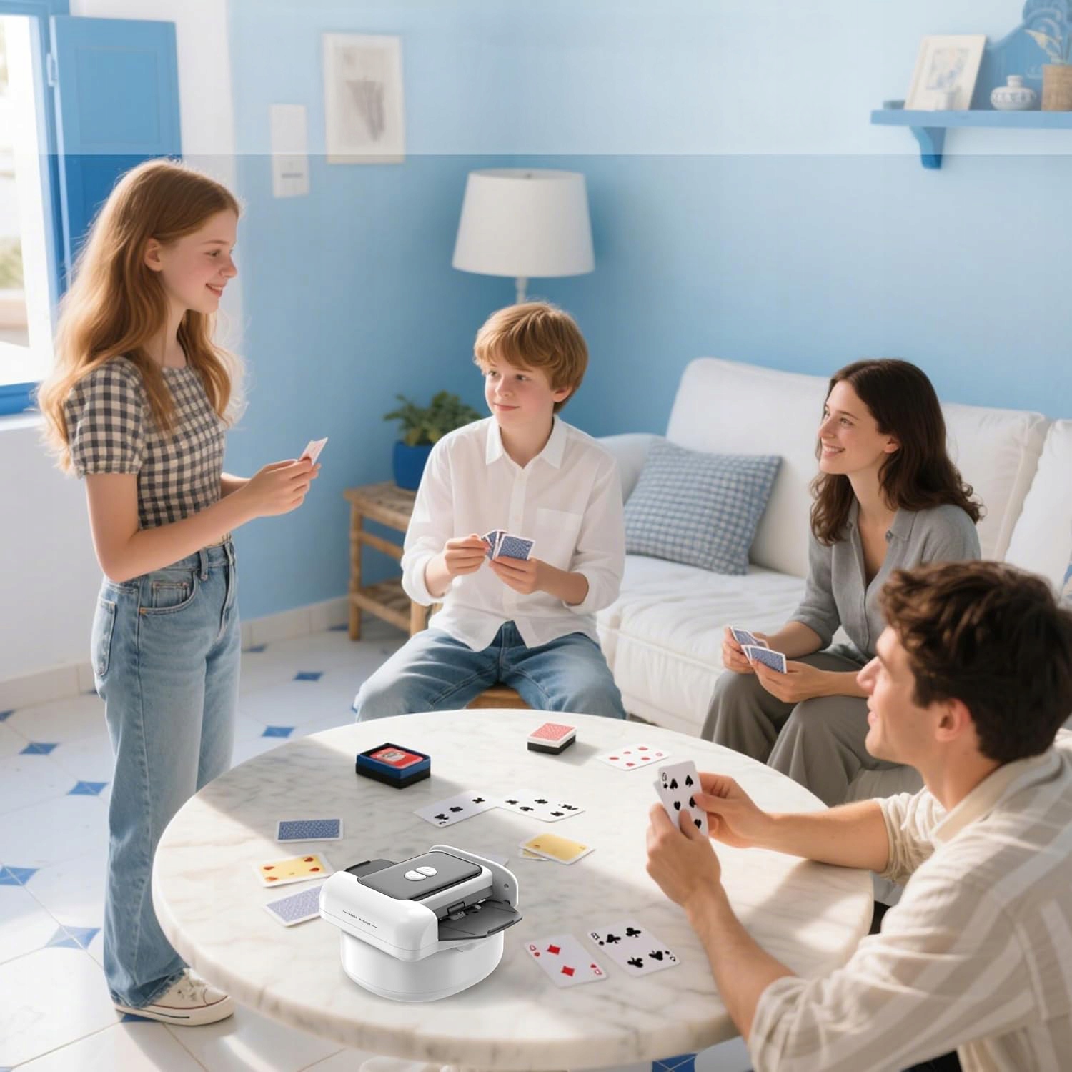 🎲НИЗЬКИЙ РІВЕНЬ ШУМУ:перетасуйте карти лише за 2 секунди з рівнем шуму лише 65 децибел, тож любителі карткових ігор чудово проведуть час із мінімальними перешкодами!