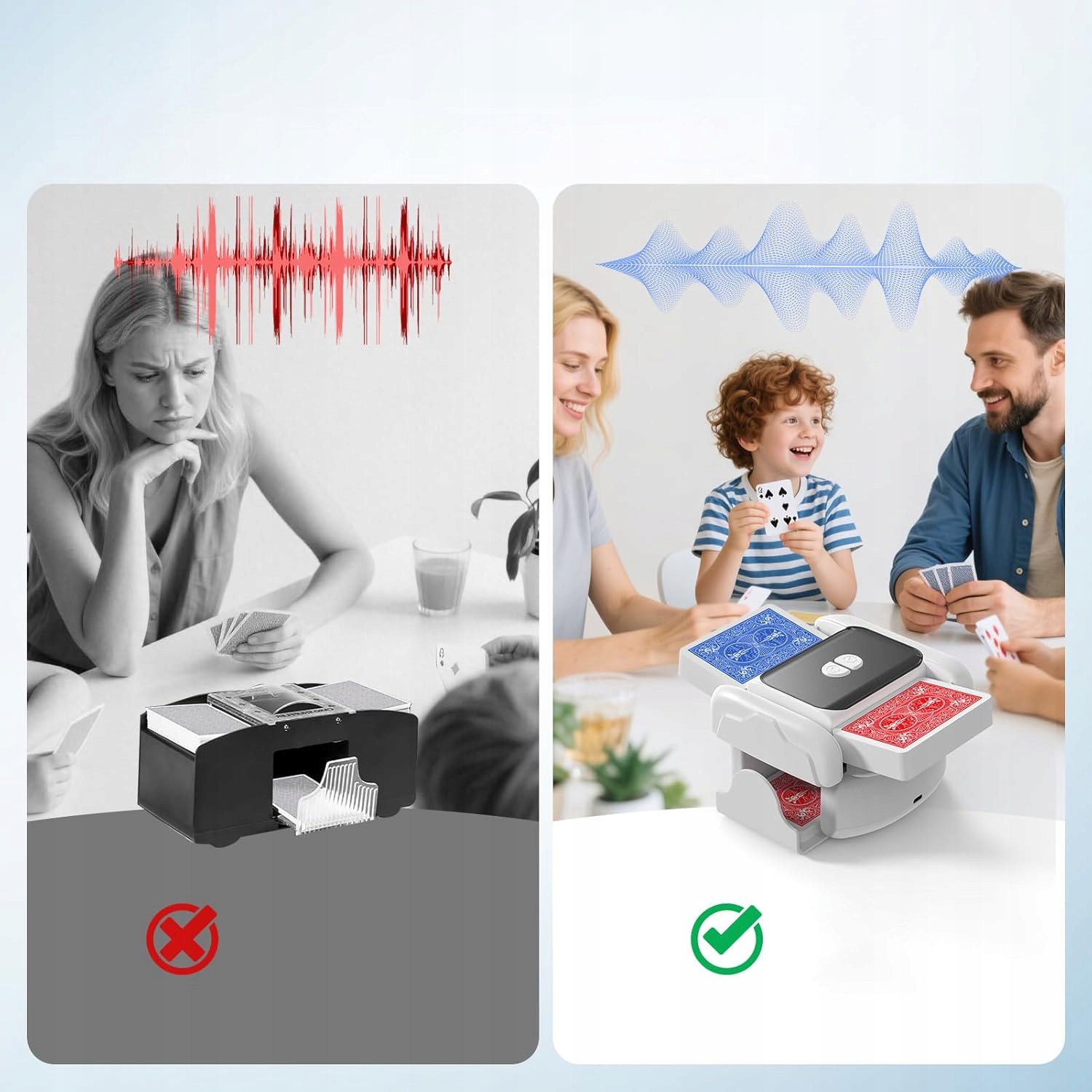 Ви граєте в покер, бридж чи, можливо, UNO? немає проблем! ❤️♠️♦️♣️ Завдяки інтелектуальному дизайну з фіксованими направляючими міксер ідеально підходить до стандартних карт (Poker, Bridge, UNO, Exploding Kittens та інші). Змішуйте одну колоду для швидких ігор або дві для тривалих сеансів!