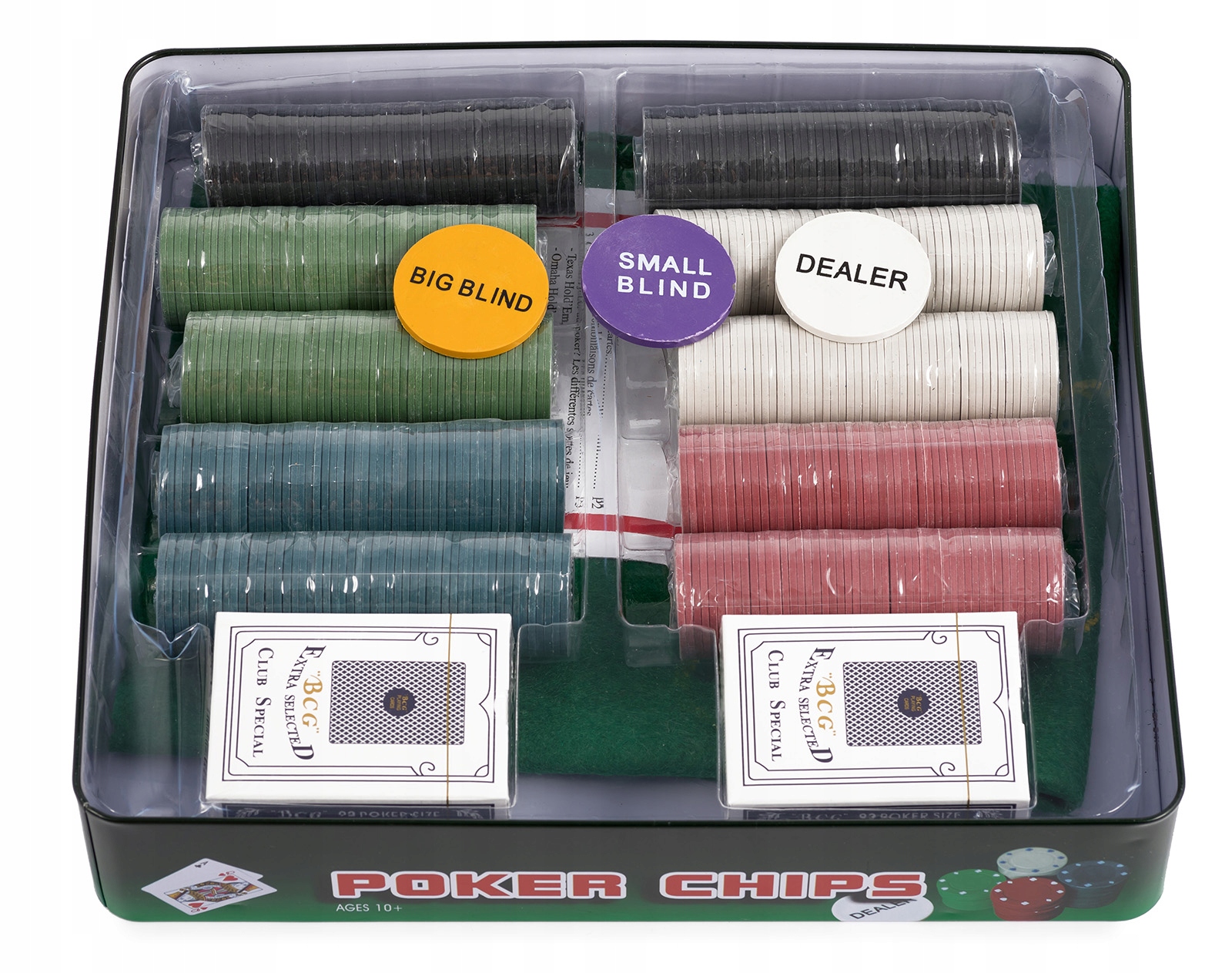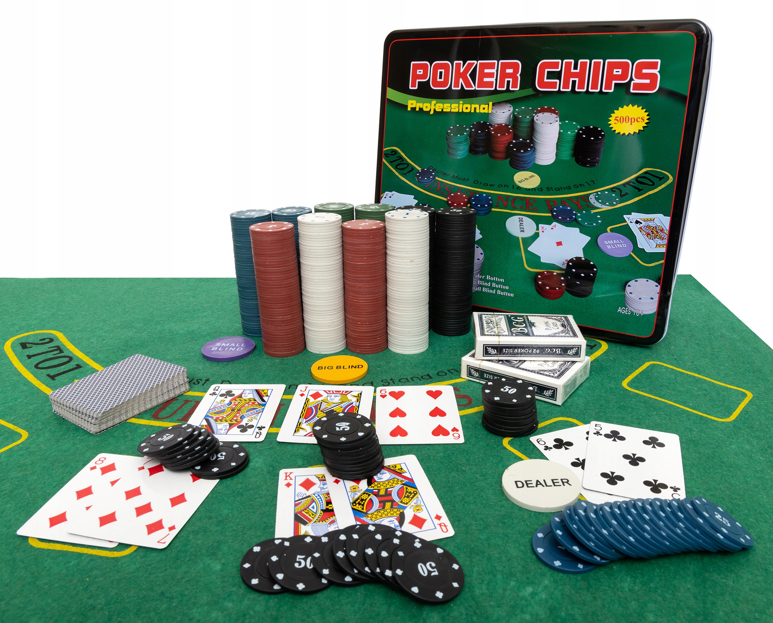 Професійний набір для гри в покер. З двома колодами карт і 500 жетонами для гри. Гарна якістькарт. Навіть після багатьох годин гри вони залишаться в ідеальному, неушкодженому стані. У набір також входить килимок, завдяки якому під час гри всі аксесуари будуть знаходитися на спеціально відведених місцях.