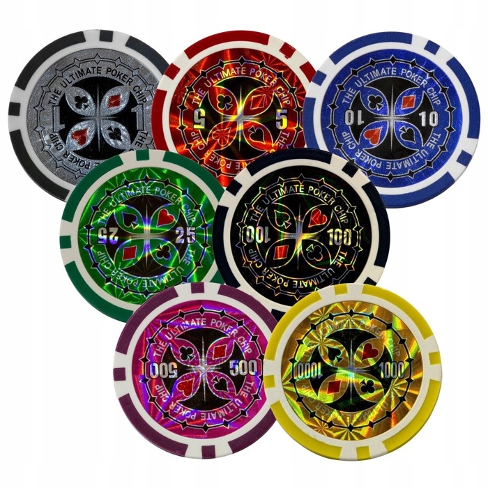 У набір входять наступні жетони "Діапазон" з номіналом, диски ідеально збалансовані і мають13.5g. Ці типи фішок розігруються на найбільших покерних турнірах.