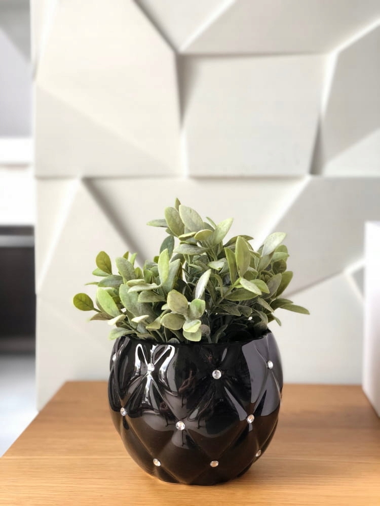 Керамічні горщики з цирконами використовуються для вирощування кімнатних рослин, але не тільки! Ви можете використовувати їх різними способами. Що? Наприклад, помістивши чудовий букет в декоративну кришку або сховавши дрібнички та предмети, для яких завжди важко знайти гарне місце. Блискучі стрази та глазурована кераміка чудово виглядатимуть з іншими гламурними аксесуарами. До квіткових горщиків, які ми рекомендуємо, додайте оксамитові подушки, кришталеві вази, золоті свічники або дзеркало в декоративній рамі. Ефект вас точно порадує! Виберіть одну модель або створіть свій власний сліпучий керамічний набір! У нас ви можете замовити запропоновані аксесуари в декількох стильних дизайнах, кольорах і формах.