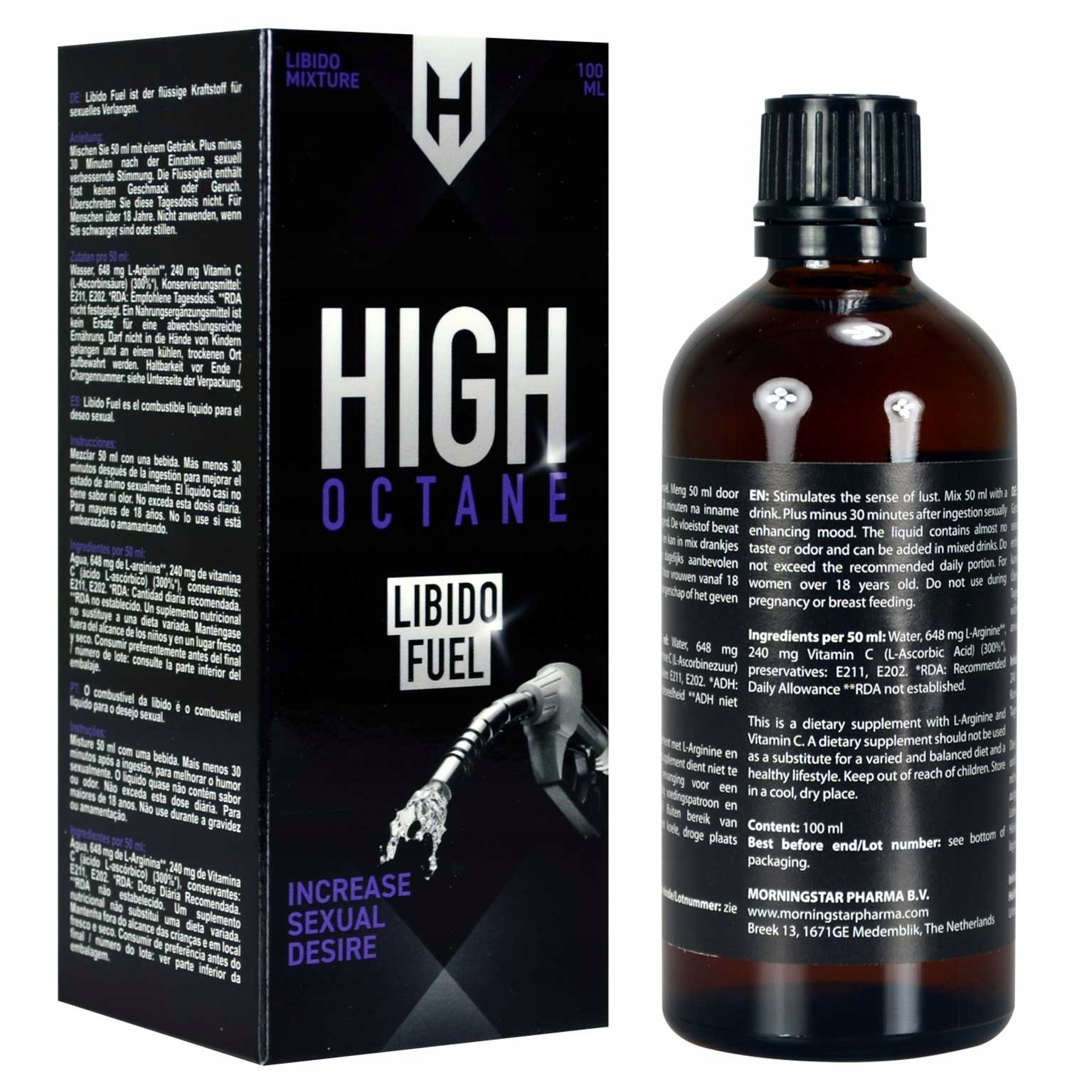 Рекомендації щодо використання: додайте 50 мл High Octane Libido Fuel до будь-якого напою. Він починає діяти приблизно через 30 хвилин. Не перевищувати добову дозу. Наслідки можуть бути різними в кожному випадку. Не застосовувати під час вагітності та годування груддю