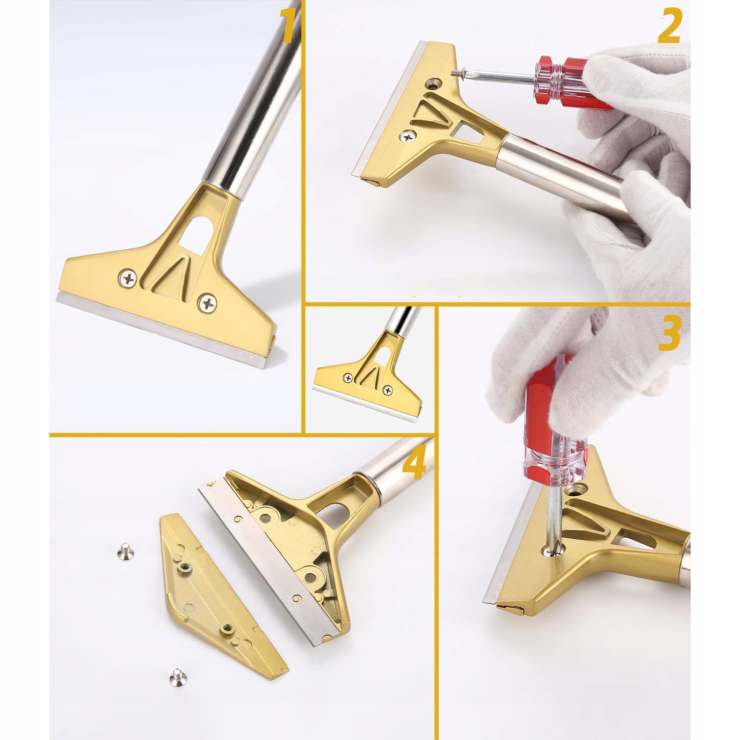 [відмінний матеріал] шпалери виготовлені з потовщеного алюмінієвого сплаву, пластикової ручки проти слизу та гострого леза з нержавіючої сталі, яка є різкою та міцною, може швидко видалити плями та мати довгу життя