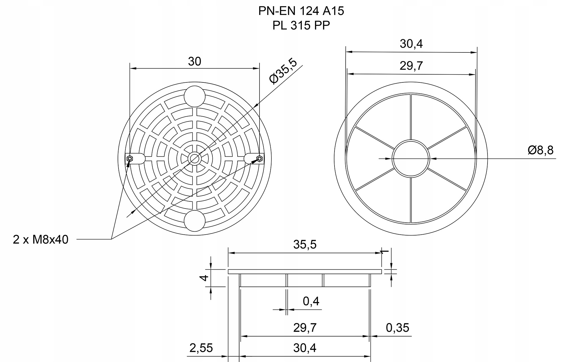 Каналізаційна кришка виготовлена з міцного поліпропілену. Клас навантаження A15 означає, що елемент може витримувати тиск до 1,5 тонни.