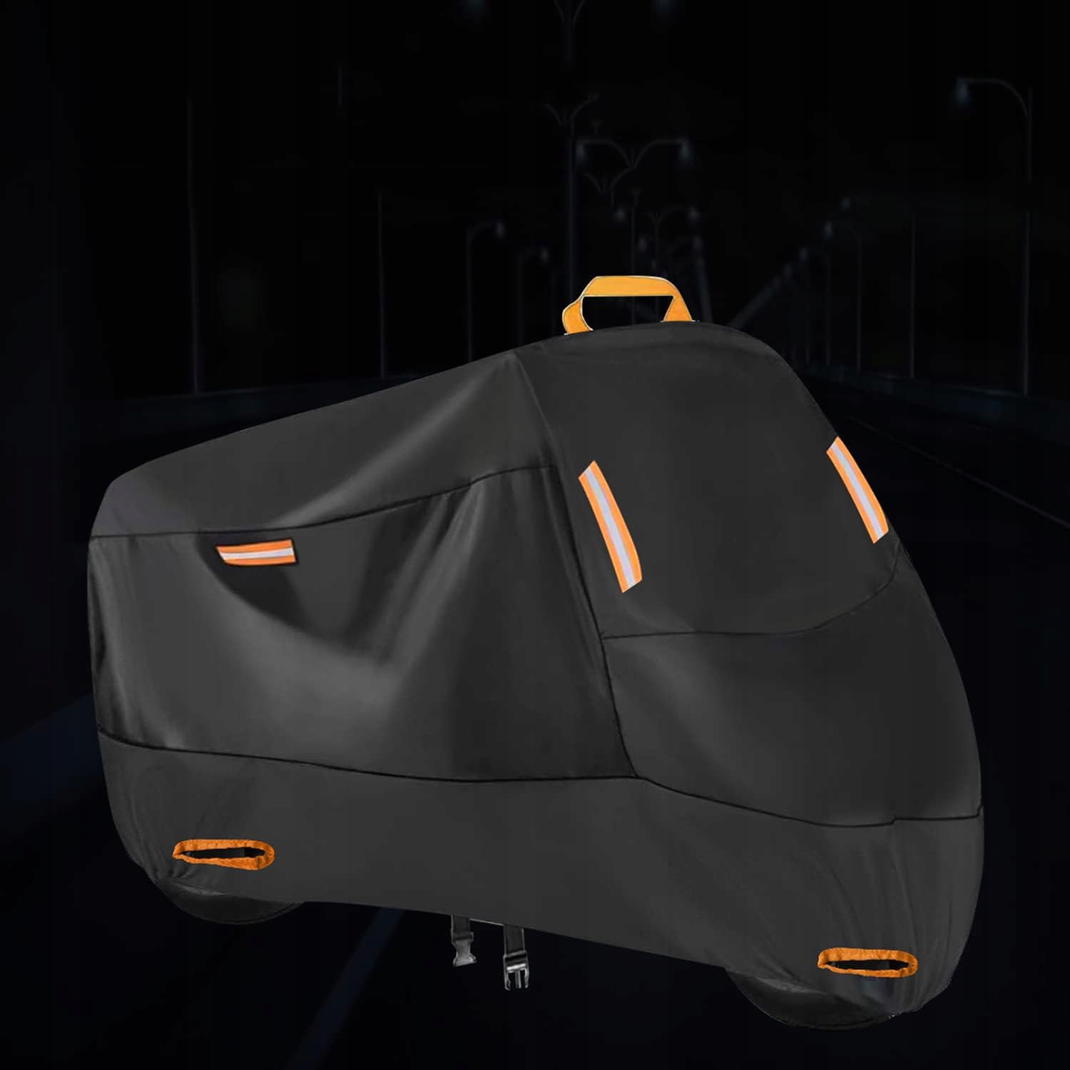 Цей водонепроникний мотоциклетний брезент має 4 дуже помітні світловідбиваючі смуги, 2 спереду та 2 ззаду. Завдяки цьому вам буде легше мотоцикл, і ви залучаєте очі в темряві. А верх обладнаний тримачем стрічки. atory