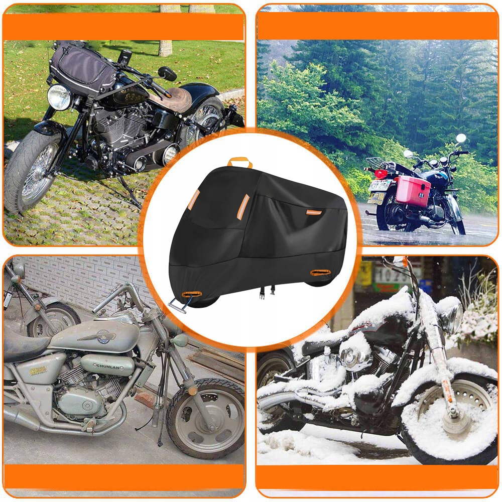 Подвійні шви роблять покриття мотоцикла більш міцним. Водонепроникний ремінь робить покриття мотоцикла більш водонепроникними, без витоків води. Оснащений сумкою для зберігання, простий у перенесенні та використання в будь -який час та місце.