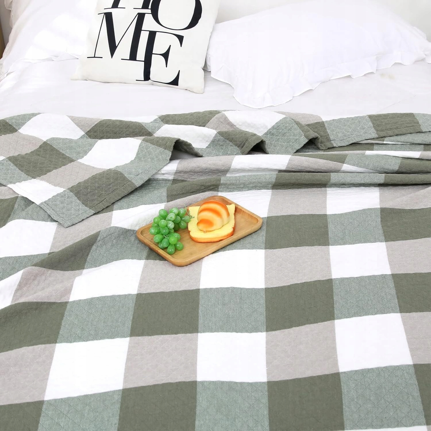 ПОКРИВАЛО 200x230 ДВОРІВНЕ ПОКРИВАЛО СТЬГАНЕ ЗЕЛЕНО-БЕЖЕВЕ В КРАТИЦЮ