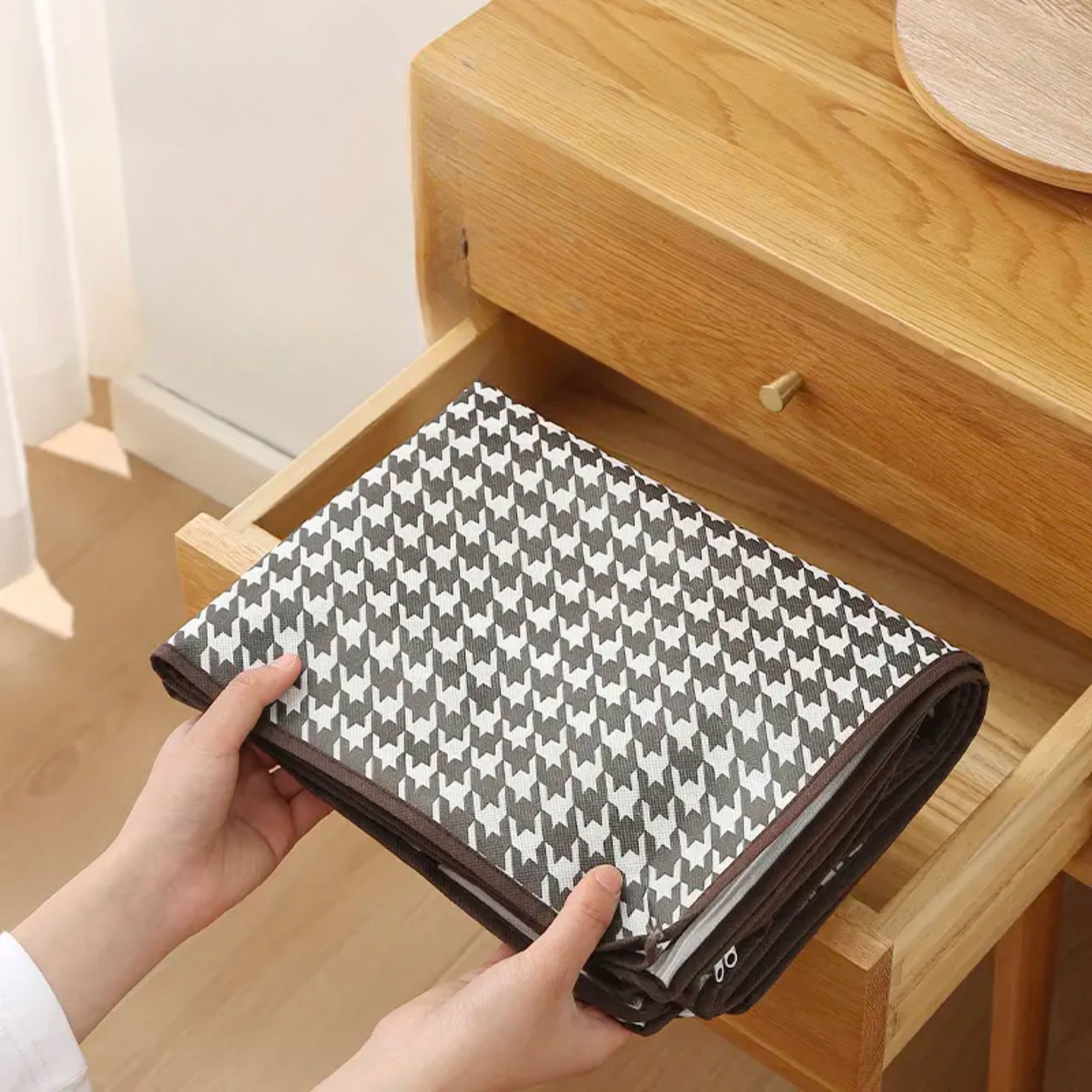 - ❤️ Органайзер для постільної білизни розмістить постіль, ковдри, подушки тощо. Це допоможе користувачам заощадити місце. Також чудово підходить для зберігання сезонного одягу.