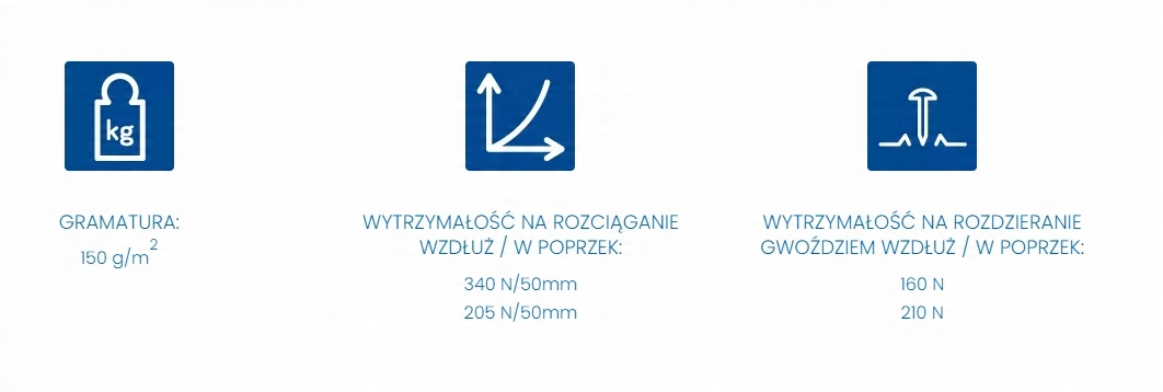 - Міцність на розтяг уздовж: 340 [Н/50 мм]