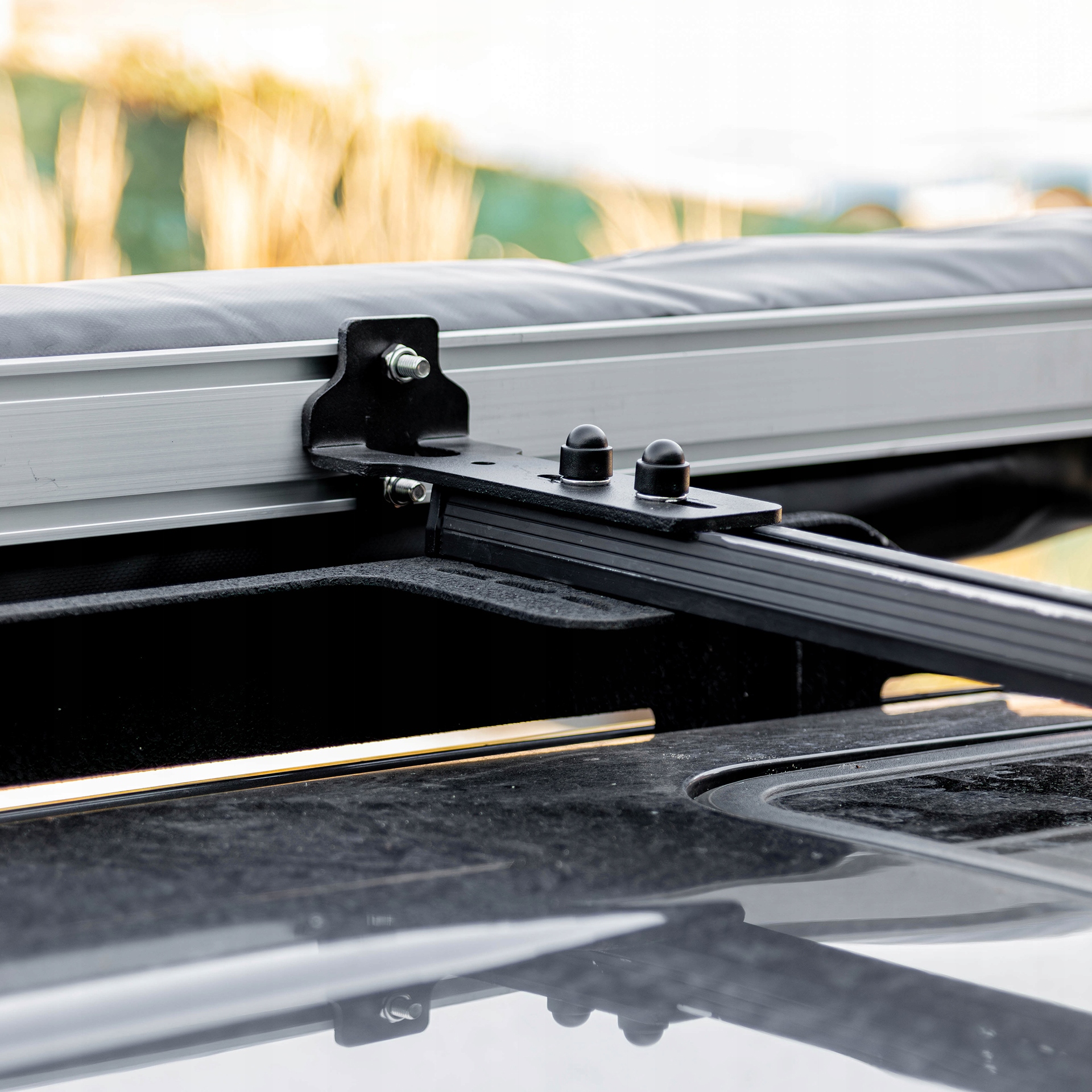 Тент достатньо, щоб прикріпити до багажника даху (поперечні промені з пазом "t") l базового багажника - платформа з боку водія, використовуючи кріпильні ручки, сумісні з найпопулярнішими системами даху. Рішення використовували гарантію стабільності та безпеки під час руху, навіть у складній місцевості.