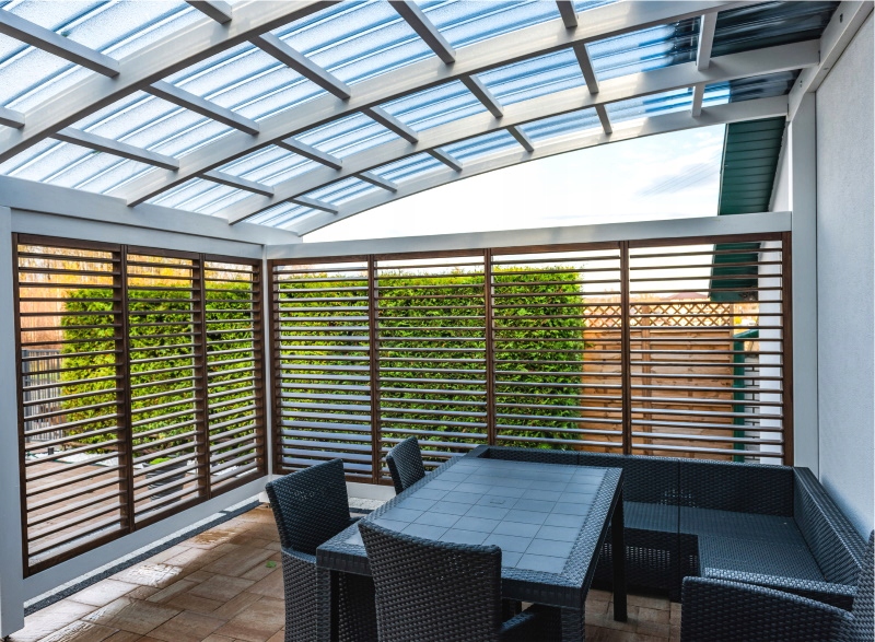 Покрівлі, які ми використовуємо, — це різні типи твердого або стільникового полікарбонату. Полікарбонат - легкий матеріал з високою стійкістю до перепадів температур, ударів і ударів. Ми пропонуємо покриття різної товщини, структури та кольору. Усі полікарбонати мають УФ-фільтр.