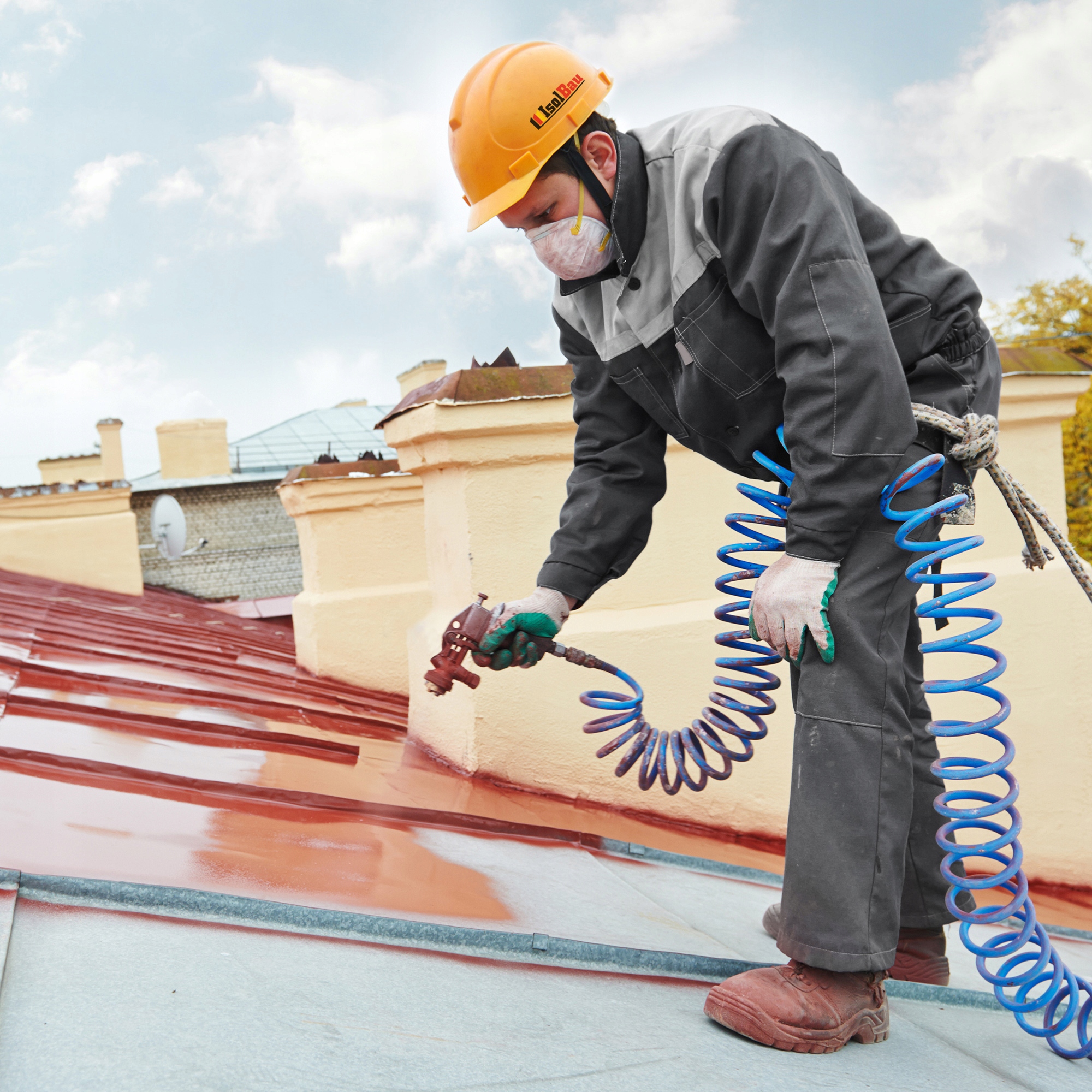 Підготовка основи: Основа має бути обробленою, рівною, гладкою, стабільною, чистою та вільною від розчинів. Видаліть старі, погано зчеплені, крихкі та відшаровуються шари та заповніть отвори. Видаліть стару фарбу, відкладення, мох тощо з дахів з азбесту та металочерепиці тощо. Видаліть іржу з корозійних поверхонь та нанесіть антикорозійний захист. Пористі та вбираючі мінеральні основи необхідно попередньо заґрунтувати глибокопроникаючою ґрунтовкою. Бітумні основи (толь або бітумні маси) загрунтуйте розчином покрівельної фарби і води у співвідношенні 1:5.