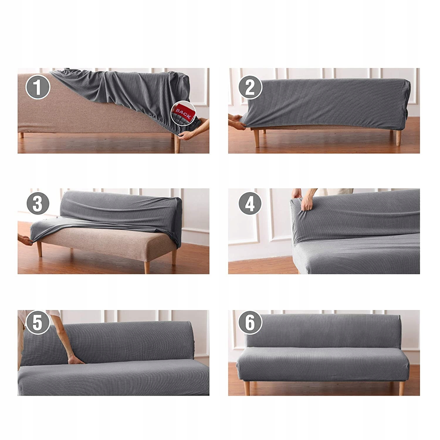 1. Знайдіть пришитий ярлик із написом «Назад», помістіть його з правого боку дивана.