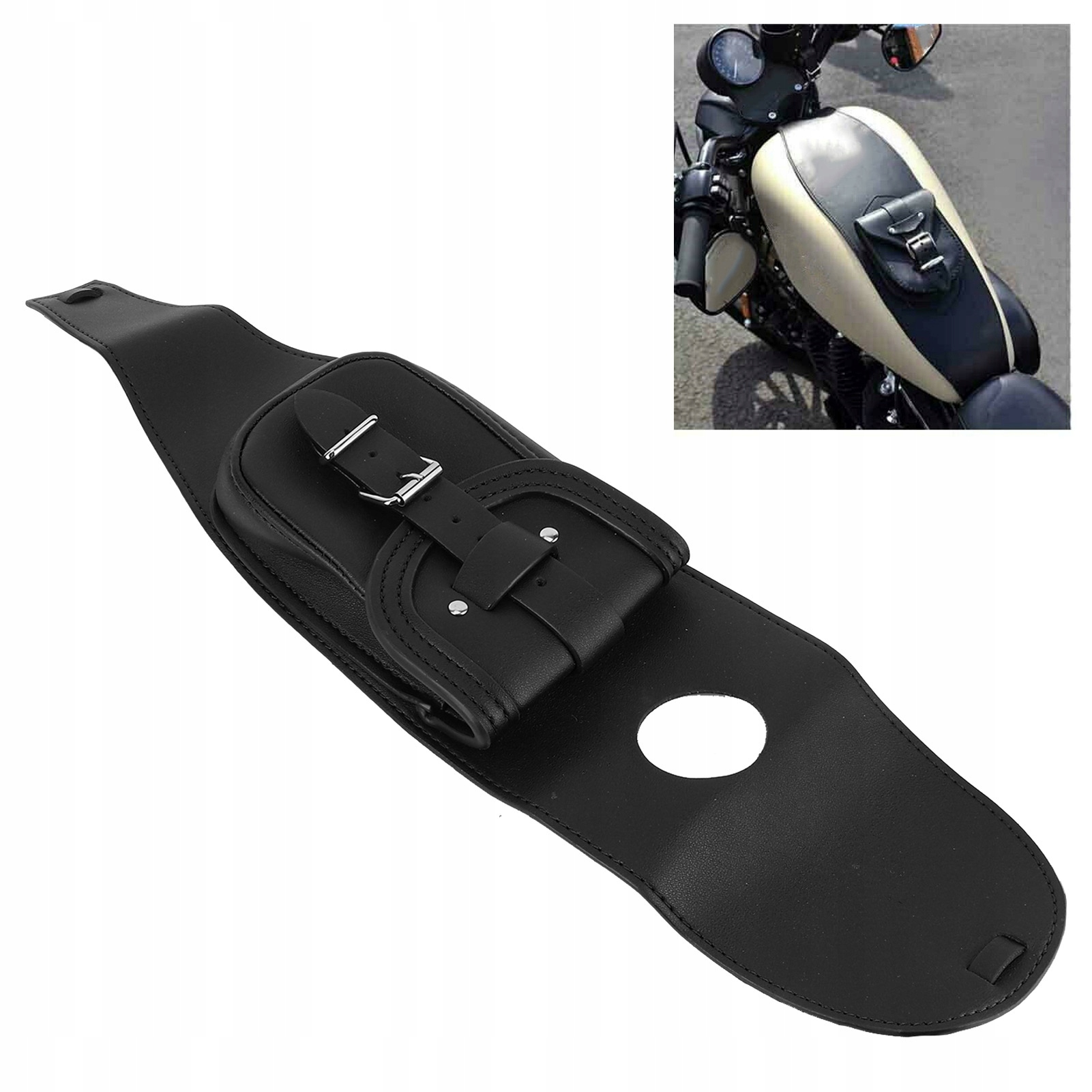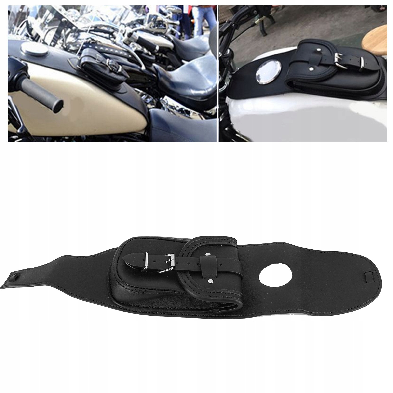 Pokrowiec na zbiornik paliwa motocykla z kieszonką skórzany czarny