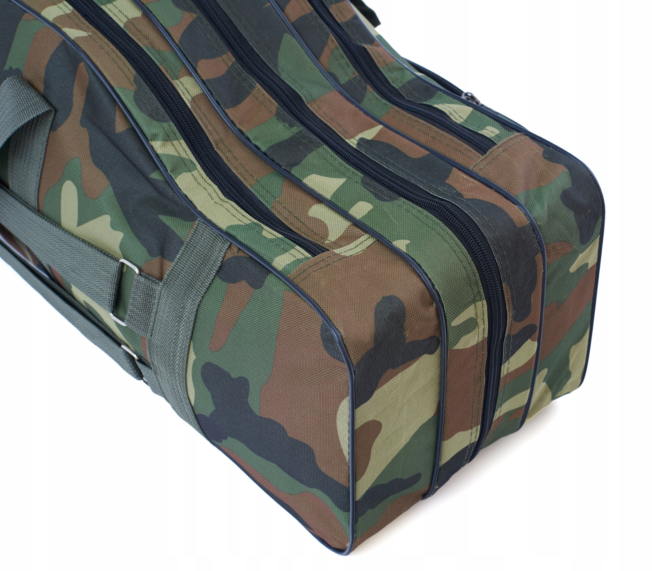 Виготовлений з високоякісного, зміцненого та водонепроникного матеріалу з двосторонніми блискавками. Крім того, гнучка і злегка посилена структура з карбоновими стрічками і міцними блискавками. Всі відділення відкриваються завдяки блискавкам. Оснащений практичними регульованими лямками для носіння на спині або через плече, а також вушками для носіння в руці. Міцний і міцний чохол для вудки. Спеціально профільована форма дозволяє транспортувати вудки з встановленими котушками, що значно полегшує та прискорює упаковку. Чохол має три відділення для вудок і бічний кишеню для додаткових рибальських аксесуарів. Крім того, сумка має дві менші кишені для дрібних аксесуарів розміром 45x13 см і 25x13 см.