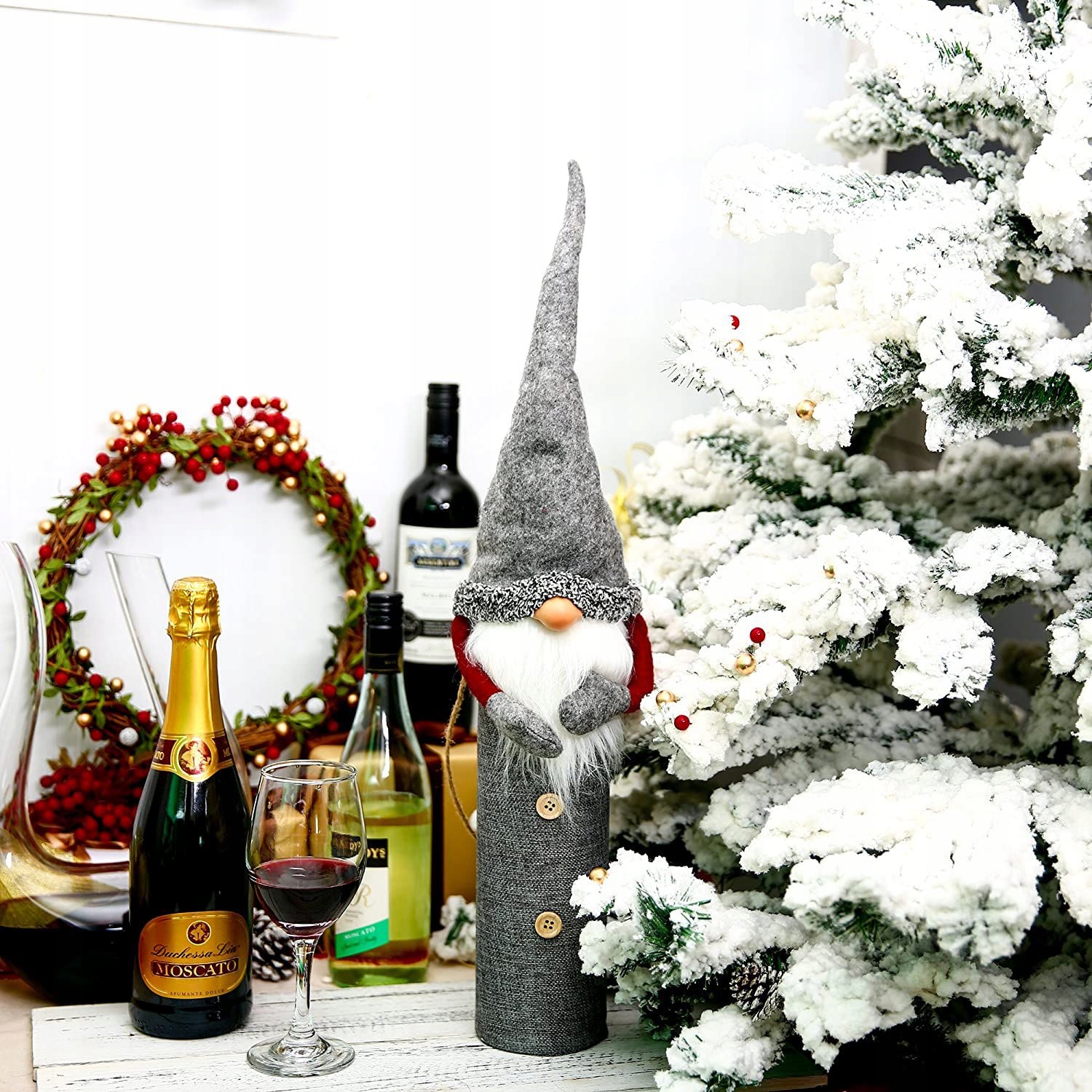 Різдво таке особливе час, в якому пляшки можуть виглядати весело і святково. Одягніть на нього костюм Діда Мороза, і ваш стіл придбає ще один елемент, який ще більше підкреслить його особливий характер.
