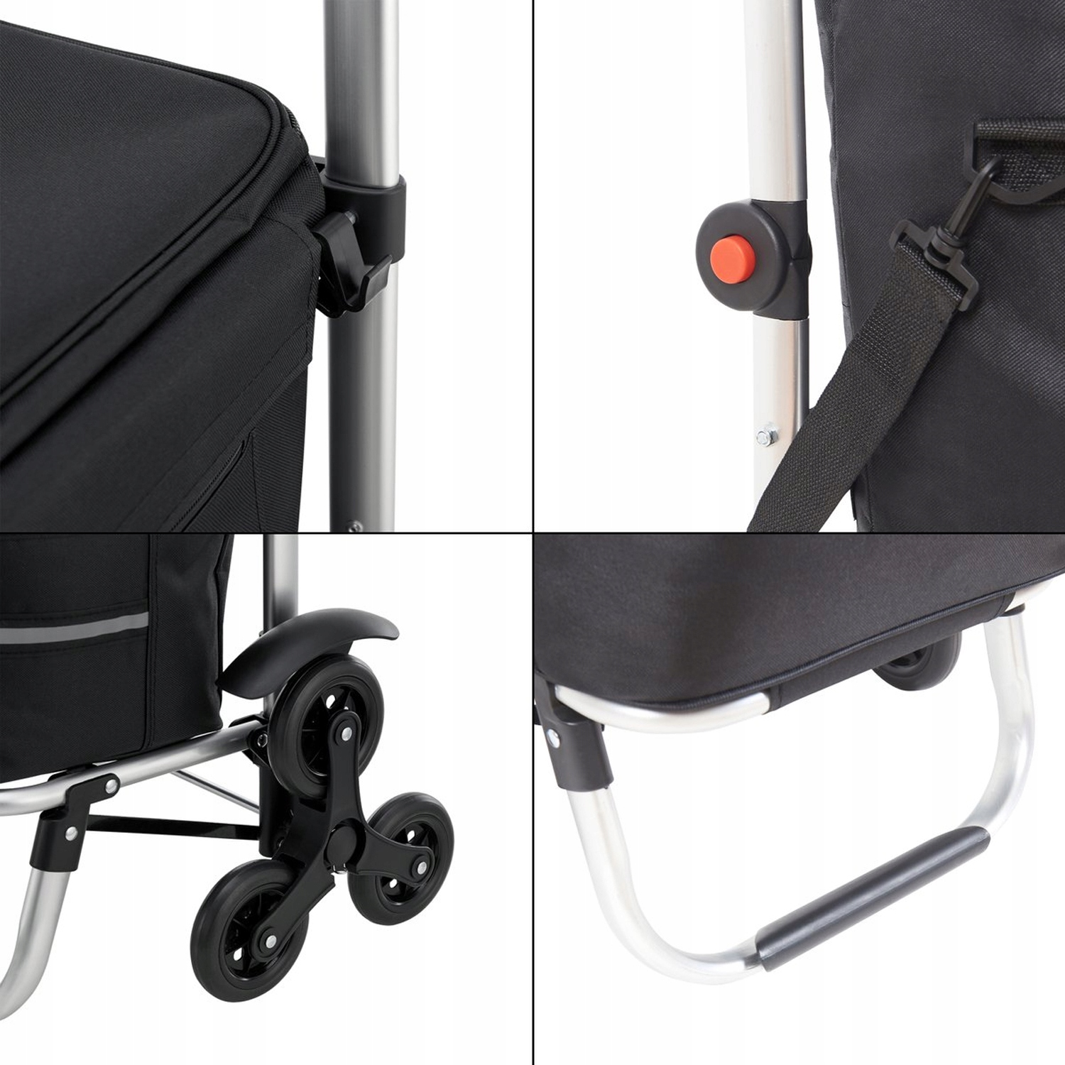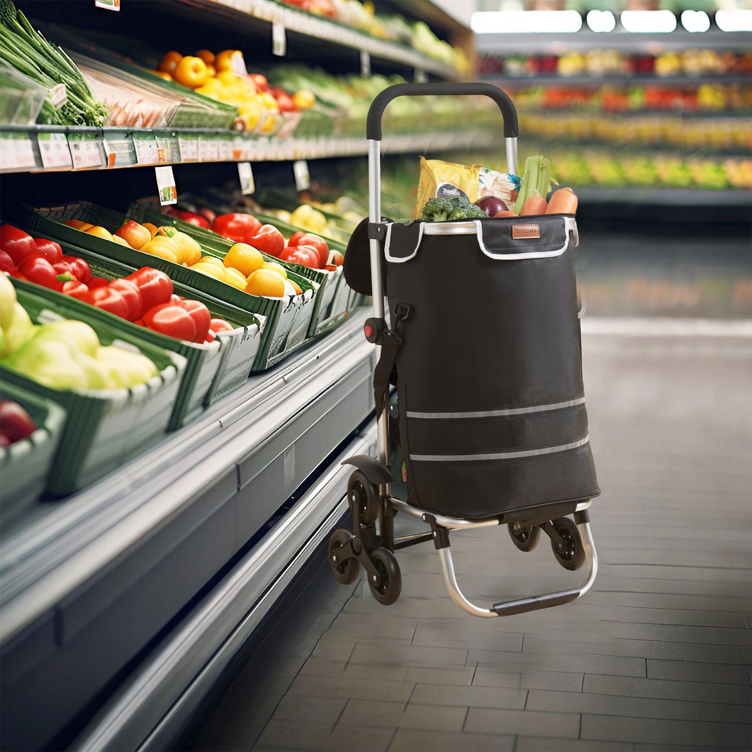 🏪 Комітет для покупок для підйому по сходах - це зручне та практичне рішення, що дозволяє зберігати та транспортувати продукти та товари , не носячи ваги сумки на плечах. Літри та навантаження до 20 кг, коляска може влаштувати значну кількість покупок, що робить її придатною для великих тижневих покупок або для транспортування декількох предметів одночасно. Ручка, покрита м'якою піною, забезпечує найвищий комфорт під час використання. Це ідеальне рішення для людей, які живуть у будівлях без ліфтів або мають справу зі сходами під час торгових транспортів.