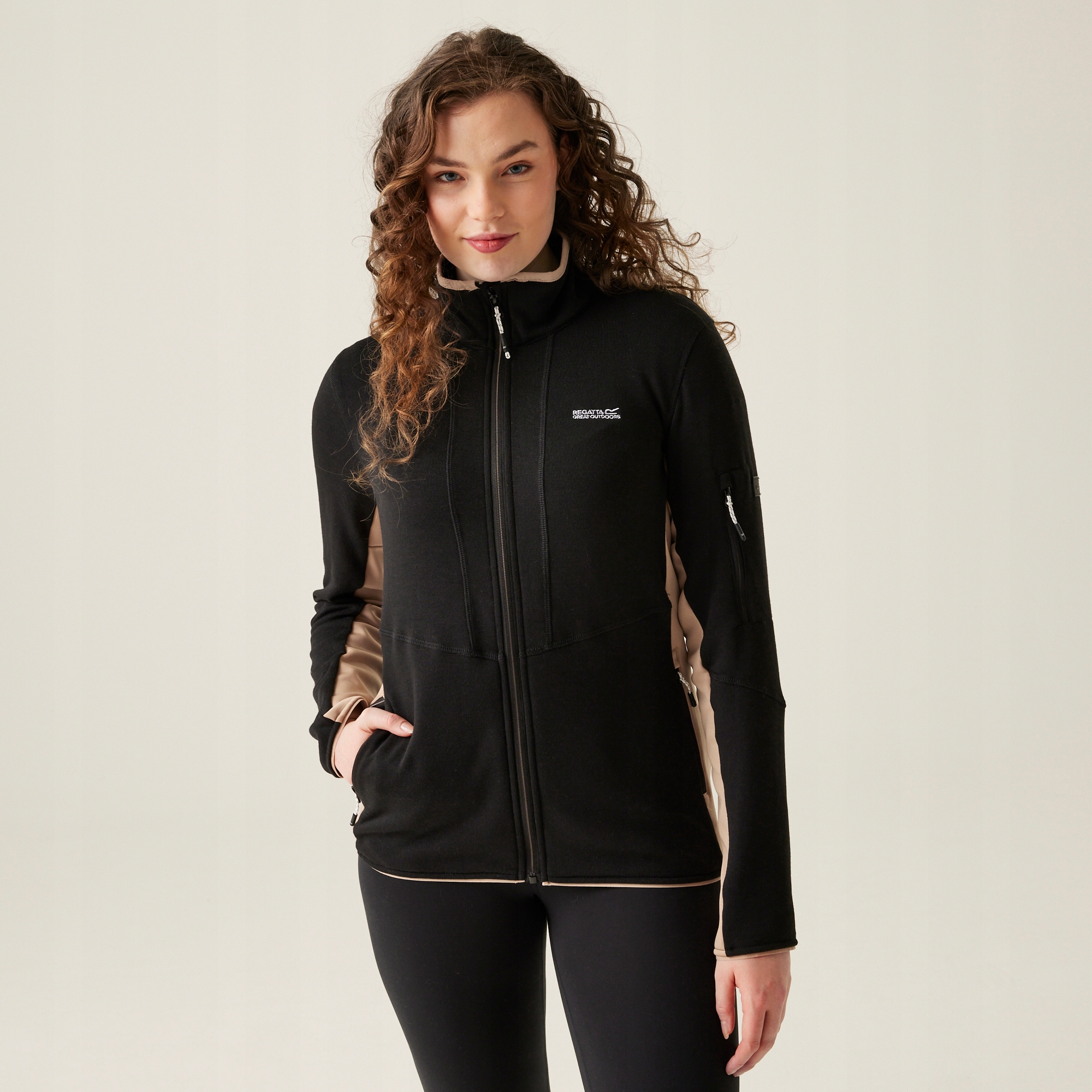 - Основний матеріал: 85% поліестер, 13% віскоза, 2% еластан (флісова тканина з ефектом мергелю, 240 г/м²).