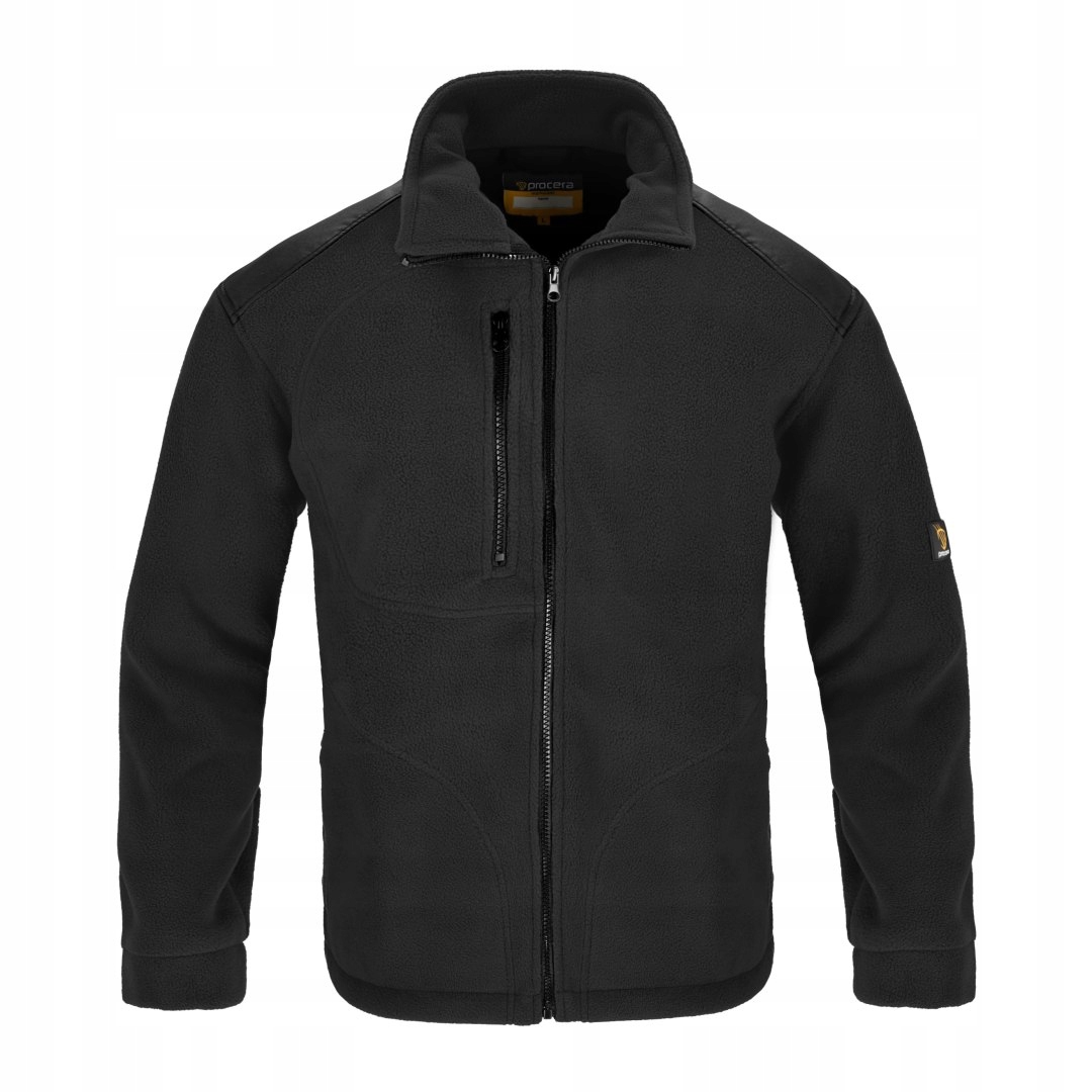 Флісольна толстовка з дуже хорошими тепловими властивостями, закріпленою блискавкою, виготовленою з флісу 350 г/м2. У флісу є дві бічні кишені та одну кишеню на правій грудях, прикріпленій блискавкою. Підсилення пришиті на шиї, плечах та ліктях. Подвійний, м'який, флісовий комір, який захищає шию від холоду. Нижня частина регулюється з пружною смугою з пробками. Розміри: S-XXXL. Упаковка: 1/10 коробка.