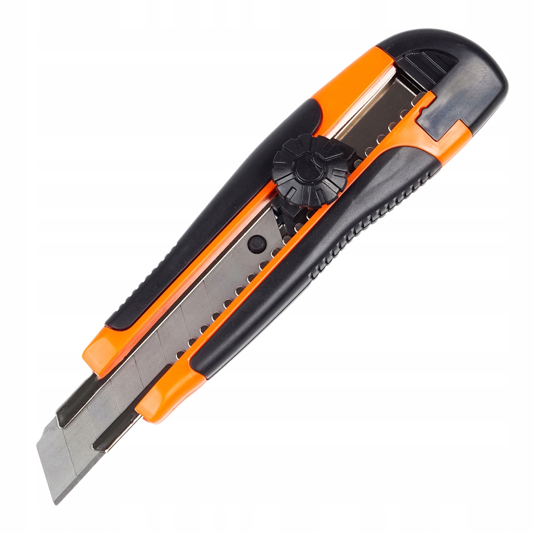 Посилений ріжучий ніж із сегментованим лезом оснащений кнопкою для фіксації та висування леза. Використовується для різання різних матеріалів у будівництві: паперу, картону, гуми, бинтів, а також для виконання багатьох домашніх робіт. Це незамінний інструмент для оздоблювальних робіт: здирання підлогового покриття та шпалер, зняття ізоляції з електричних кабелів, виконання криволінійних надрізів матеріалів тощо.