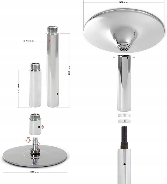 POLE DANCE TUBE ø 45 мм РЕГУЛЬОВАНИЙ 2,31-2,74 м БЕЗ СВЕРДЛЕННЯ